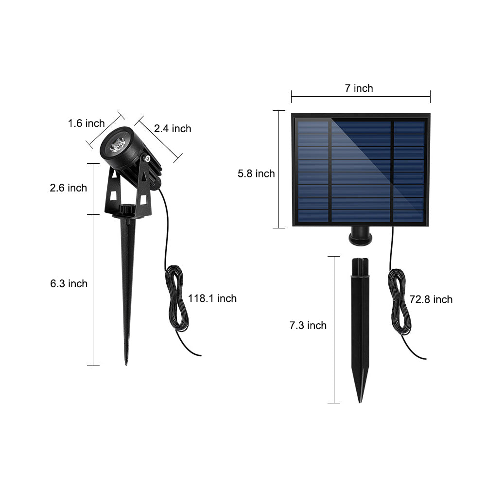 | Solar Panel Size (Both): | 7'' Width x 5.8'' Depth x 7.3'' Height |
