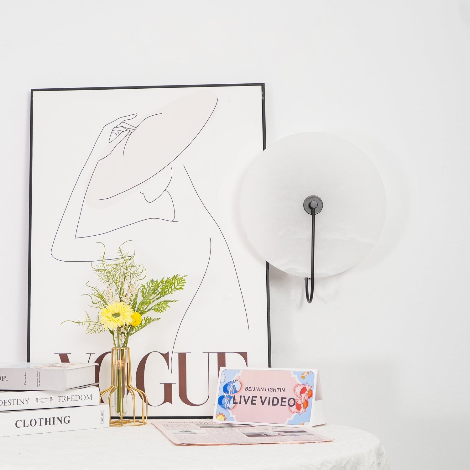 The Alabaster LED Plug-In Wall Lamp adds a touch of elegance and sophistication to any room. Crafted from high-quality alabaster stone. its circular shape and unique snowflake pattern provide a warm and mesmerizing ambient light. The slim black arm adds a modern touch. making it an ideal choice for those who appreciate the beauty of nature.