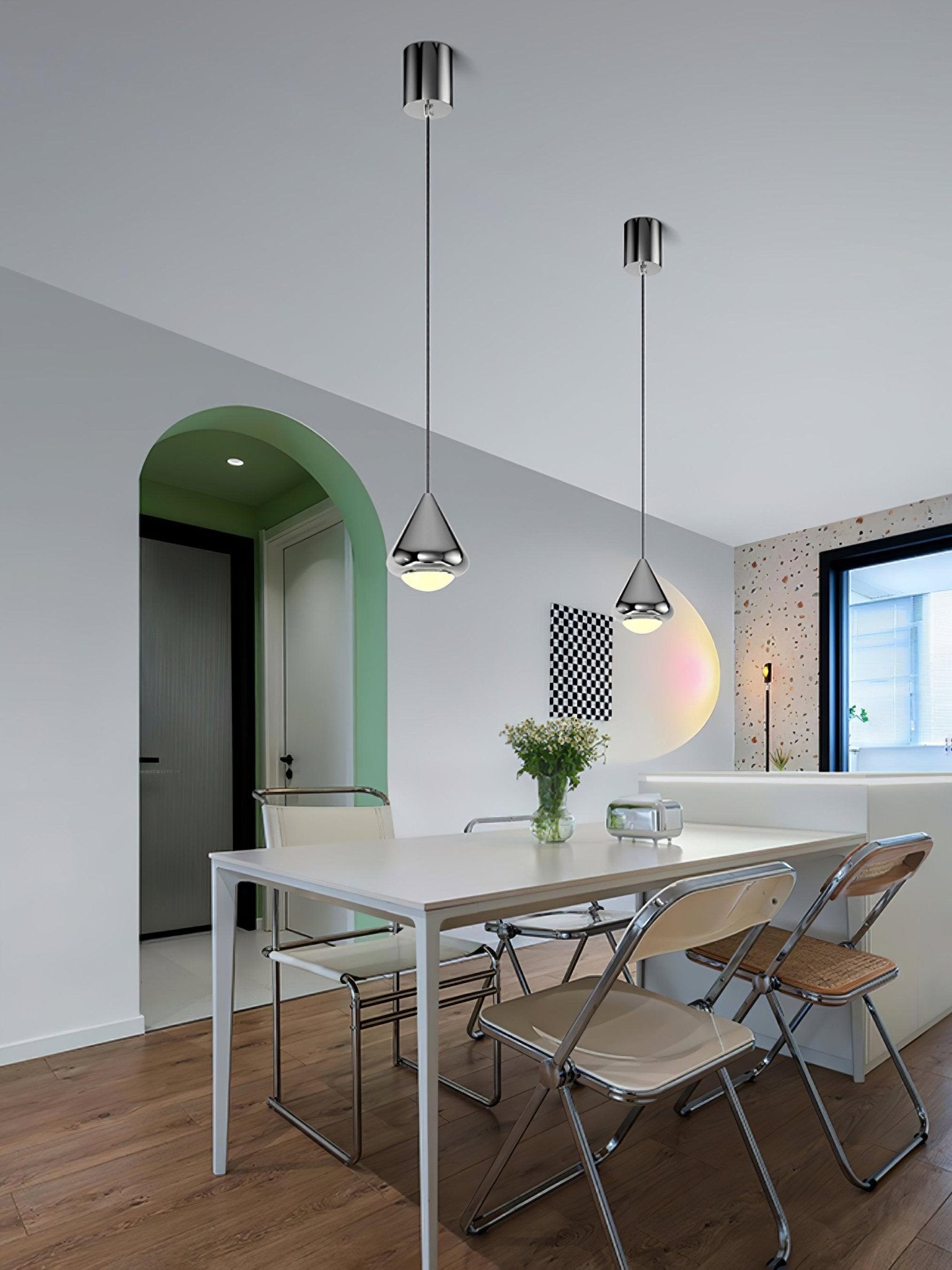 The soft. dynamic shape of the lampshades gives the LED luminaire an elegant character. Each is equipped with a special optical lens. which reflects the light brilliantly and with natural coloring. Because its surface reflects the surroundings and seems to blend in with the luminous diffuser.