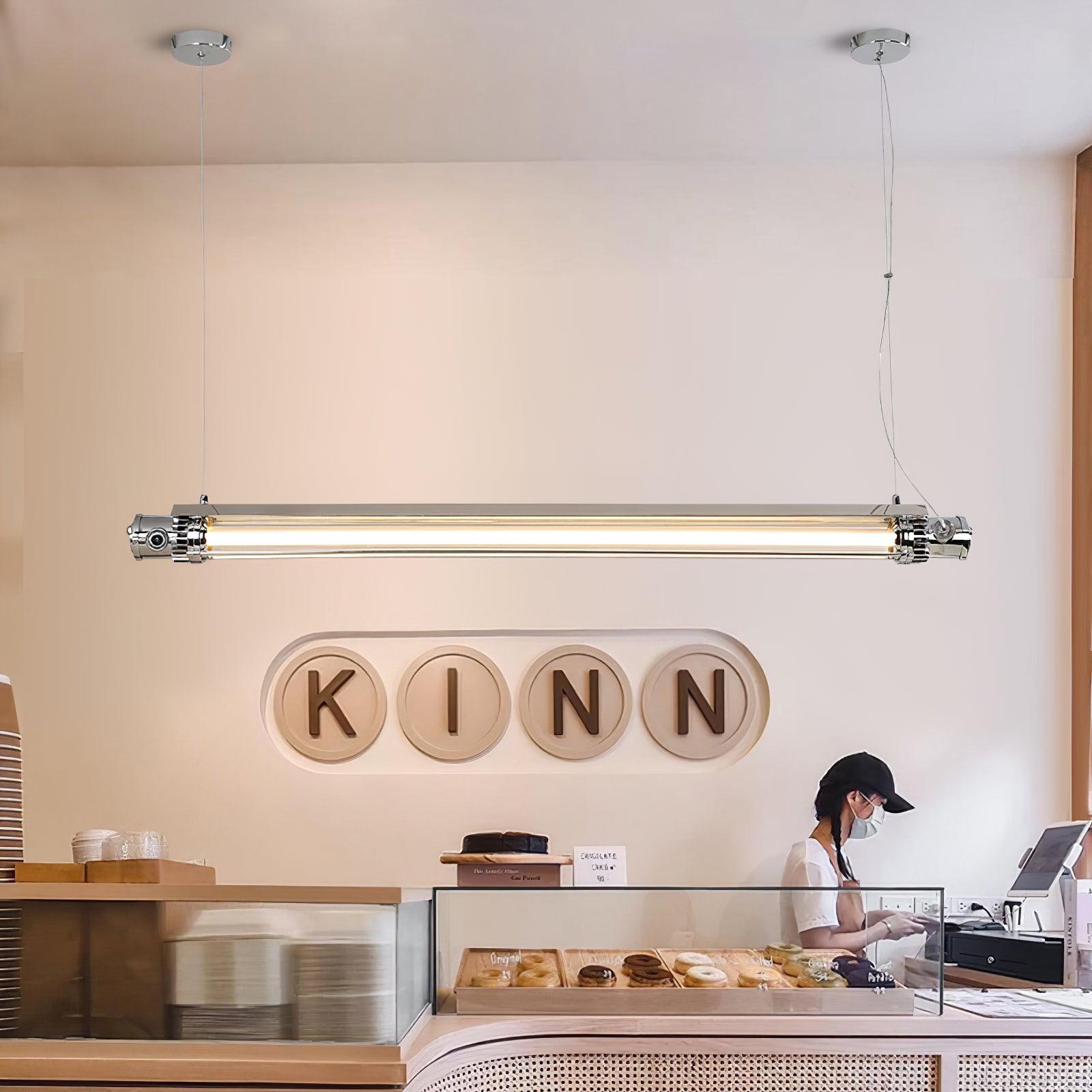 A 48” long row of symmetrical channel-set diffusers. each handcrafted artisan from clear cast glass. evokes the look of jewelry in this glittering linear chandelier. Sleek and sparkling. this clean-lined design elevates kitchens. bars and other functional entertaining spaces without blocking views.