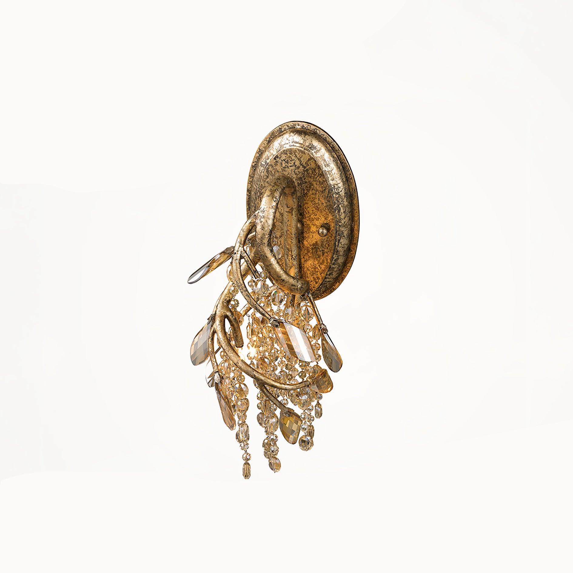 The Autumn Twilight Wall Lamp pays homage to nature with its glimmering glass beads. mimicking the dewdrops of a forest canopy. The mysterious golden finish ensures this modern marvel fits into any contemporary setting. Its candelabra bulbs provide an internal light source that sparkles across its multitude of shining surfaces. igniting curiosity and conversation. Creating an eye-catching focal point. this branched fixture is perfect for accentuating living and dining areas. as well as lobbies.