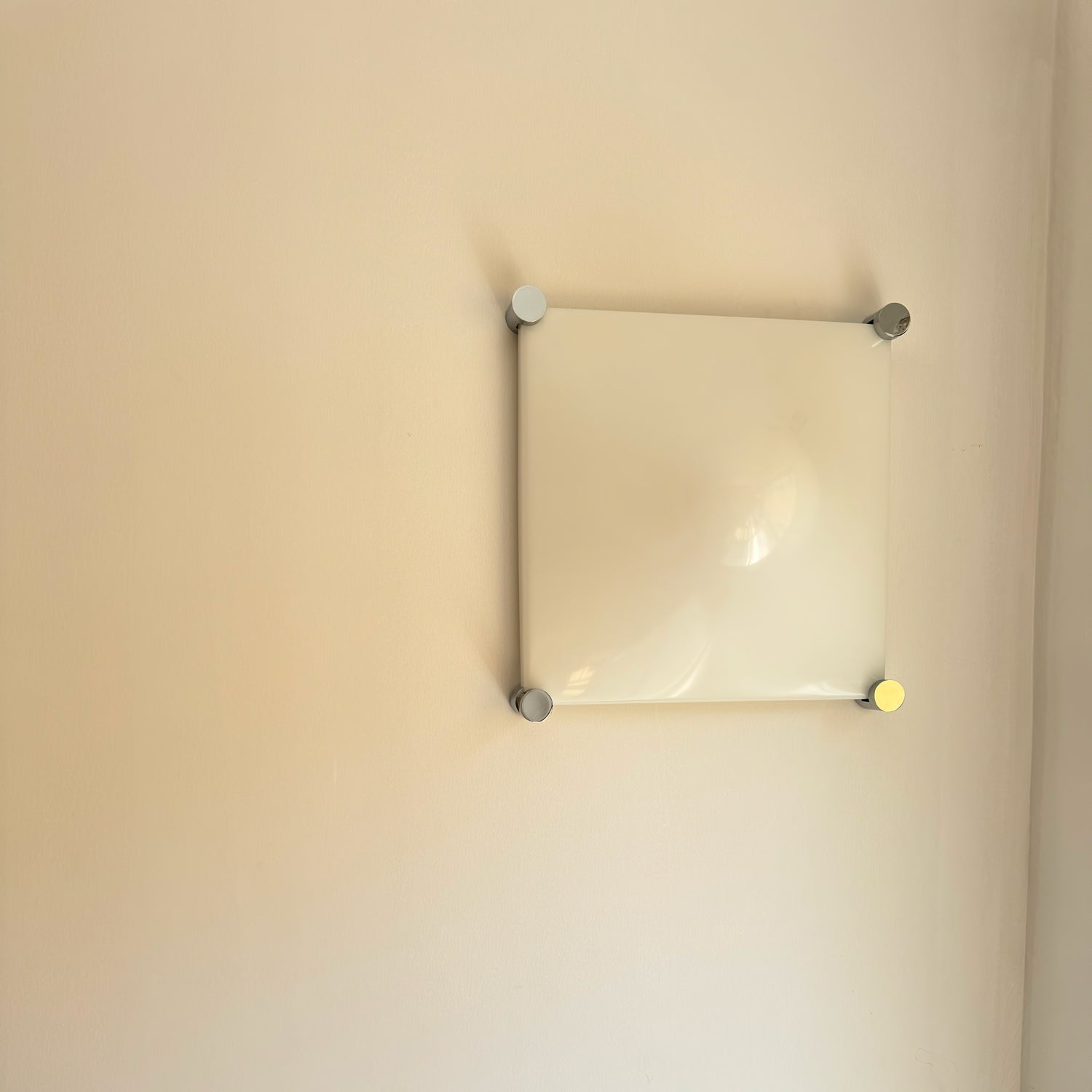 Still in the act of being filled. a bubble of light seems to come out of the ceiling. It looks like a thin material that becomes heavier with its contents and that could burst at any moment. if it weren't supported by 4 spacers placed at the four corners of the base.