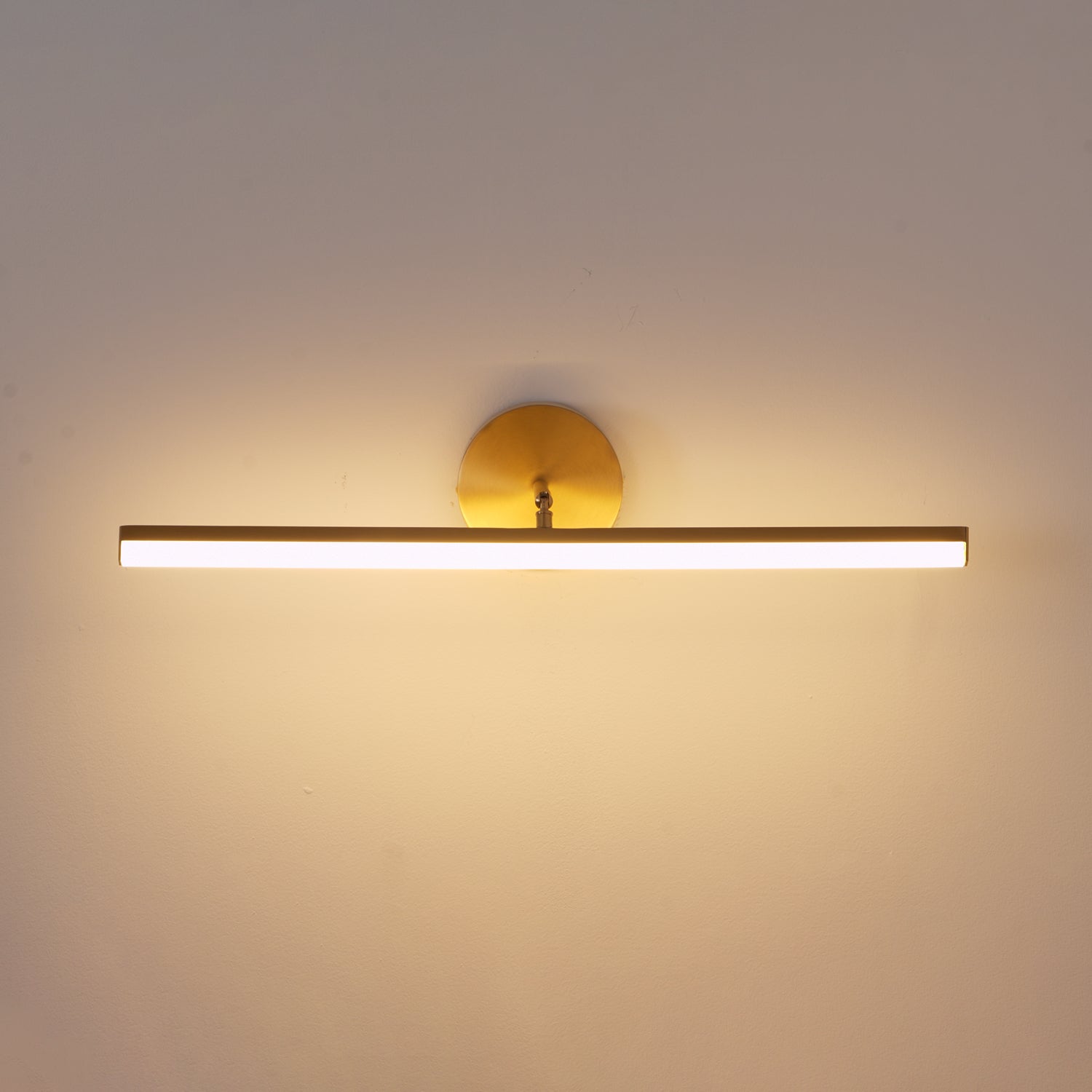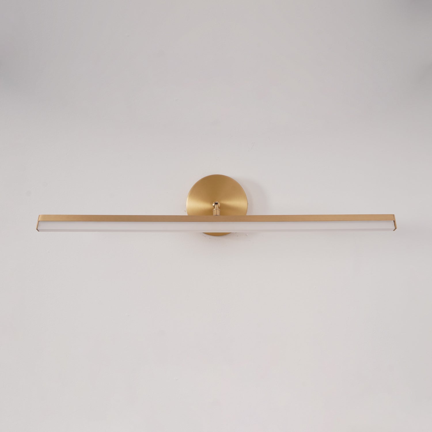 This LED bathroom vanity features a modern clean design with a front light cover made of acrylic and a rear panel made of brass. It is an LED light source.