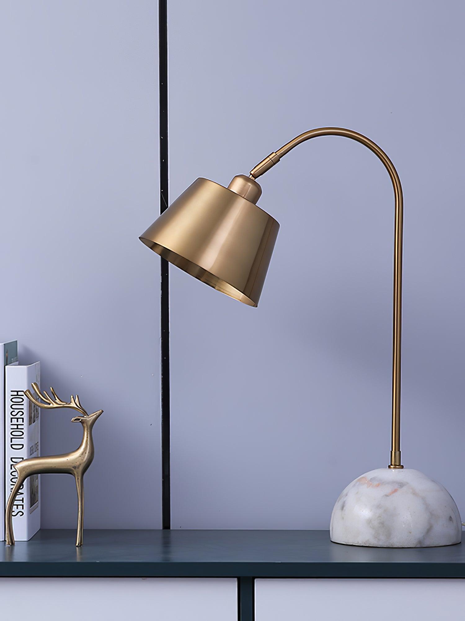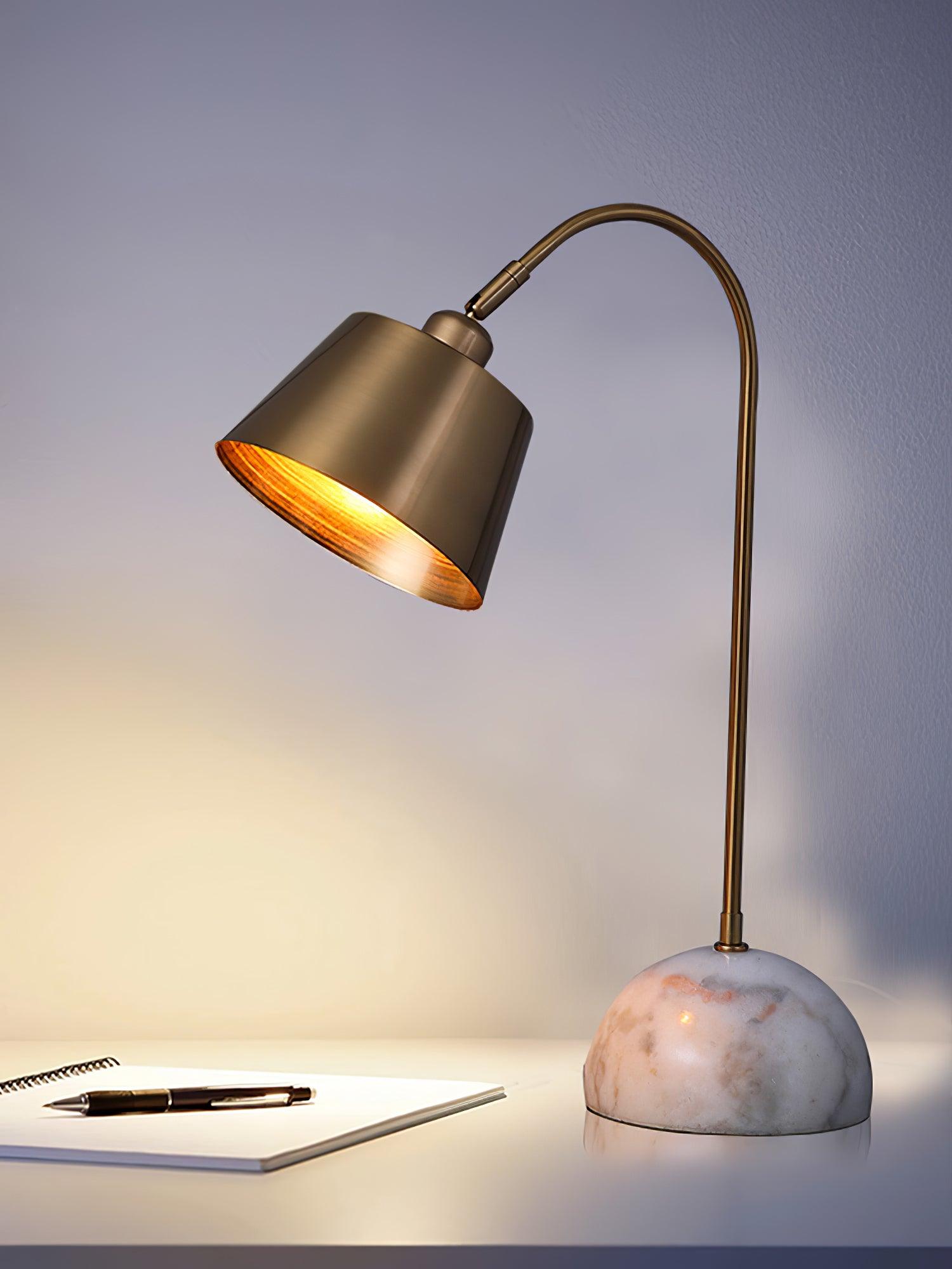 Add Decorative And Functional Elements To Your Decor With Brax Lamp. This Table Lamp Features An Metal Finish On An Adjustable Body Supported By A Natural White Stone Base. It Adds An Excellent Source Of Light To Your Room Or Workspace As Well As A Fun Modern Style.
