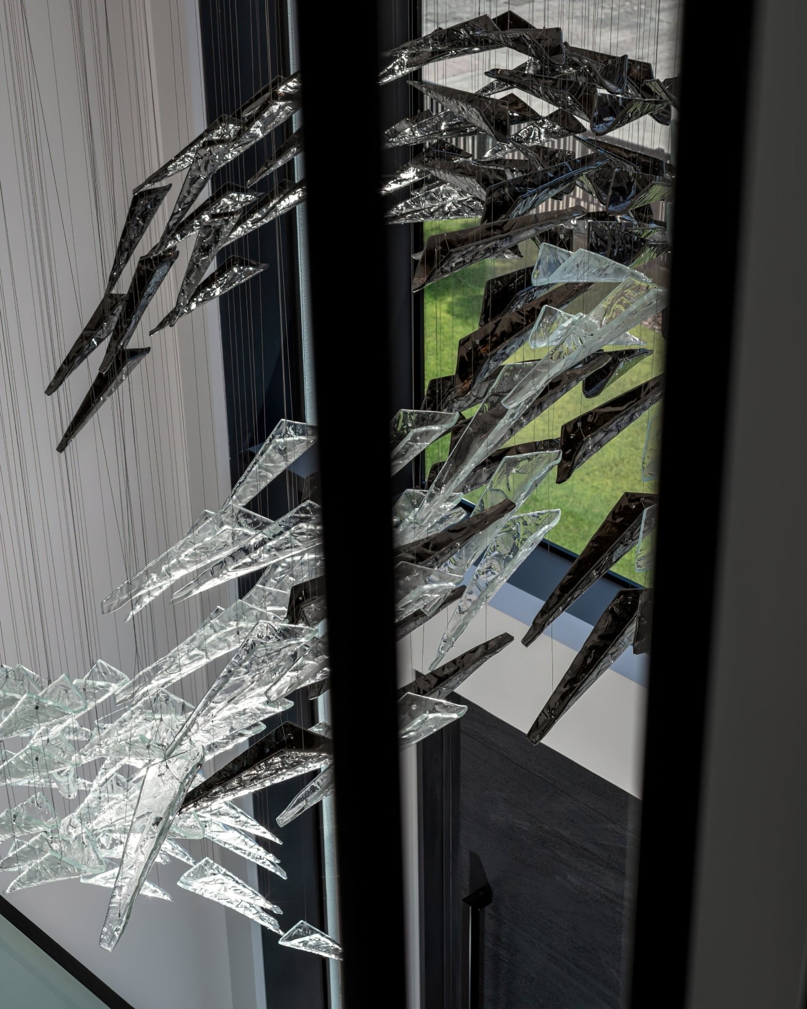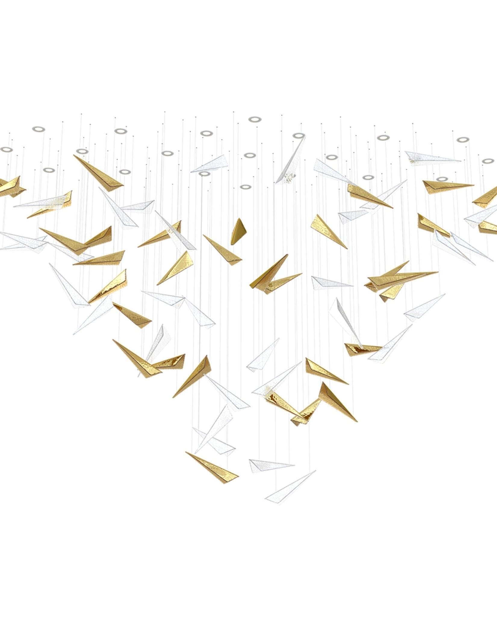 Discover the Breeze Chandelier. a complex masterpiece that combines gold nanocoating and textured glass for a stunning interplay of contrasts. Inspired by boldness and reversal. its sharp angles and carefully crafted glass components create a daring style in any space. Part of a series that embodies sophistication and daring design.