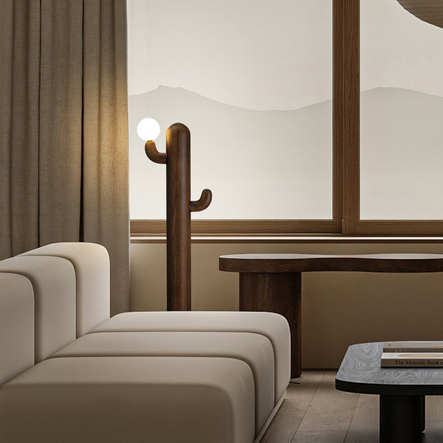 Drawing inspiration from the organic silhouette of a cactus. the Cactus Floor Lamp blends nature's simplicity with modern design. The wooden body mirrors the unique form of a cactus. with branches extending elegantly to hold softly glowing orbs. making it a playful yet sophisticated addition to any space.