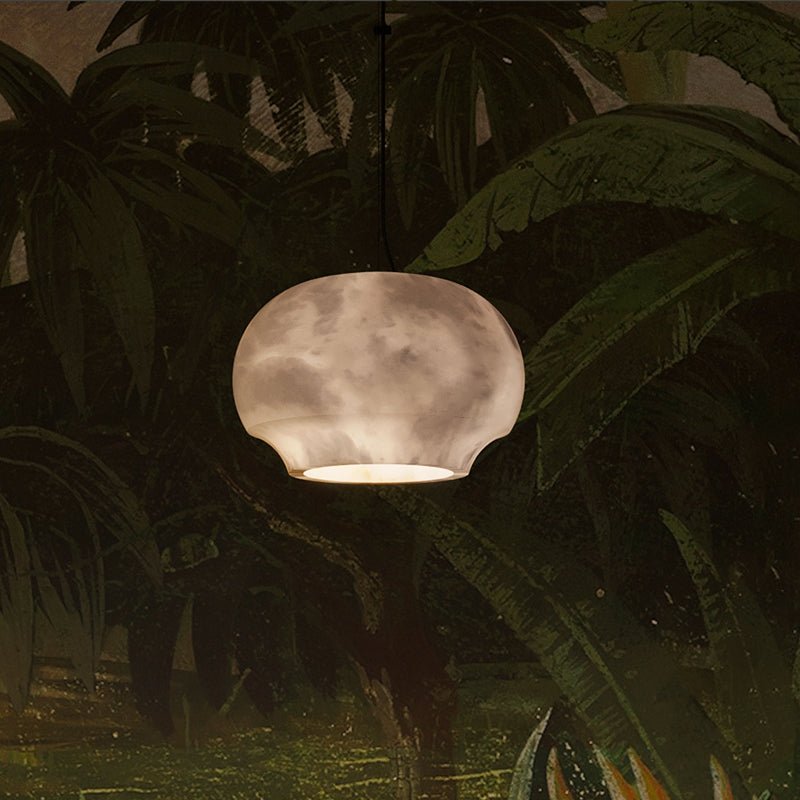 The Camille Alabaster Pendant Lamp is a stunning addition to any dining room. With its elegant curves and controlled soft lighting. this dome-shaped chandelier elevates the ambience of intimate dinners. The luminous glow of alabaster creates a beautiful statement piece while providing a warm and inviting atmosphere.