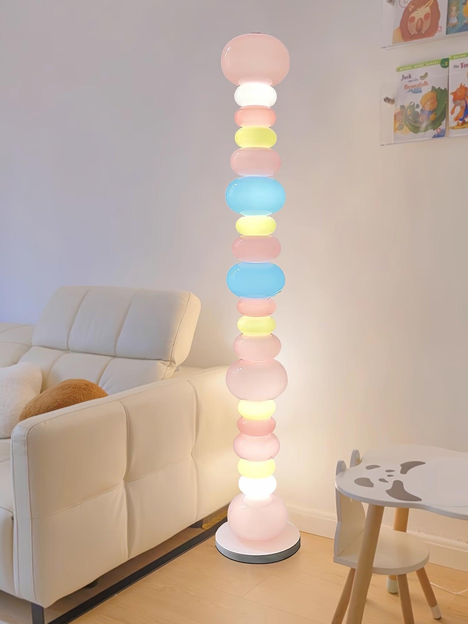 Colorful and beautiful candy floor lamp. it has round and delicate glass. and the size is cleverly combined to create a beautiful and continuous line work. which is simply beautiful!