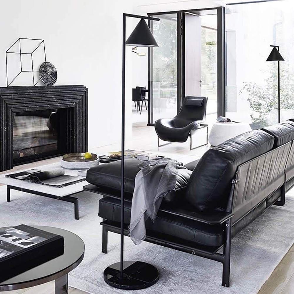Sleek and graceful. this versatile floor lamp features smart details from head to toe. At the top. its spinning cone diffuser provides direct light that can be repositioned. On the bottom. it is weighted by a stunning white Carrara or black Marquina marble base. Its stem and cone are available in painted steel or brushed brass. The diffuser is an injection-molded opal photoengraved PC (polycarbonate). Its power cord measures 200 centimeters and features a foot switch with ON-OFF functions.
