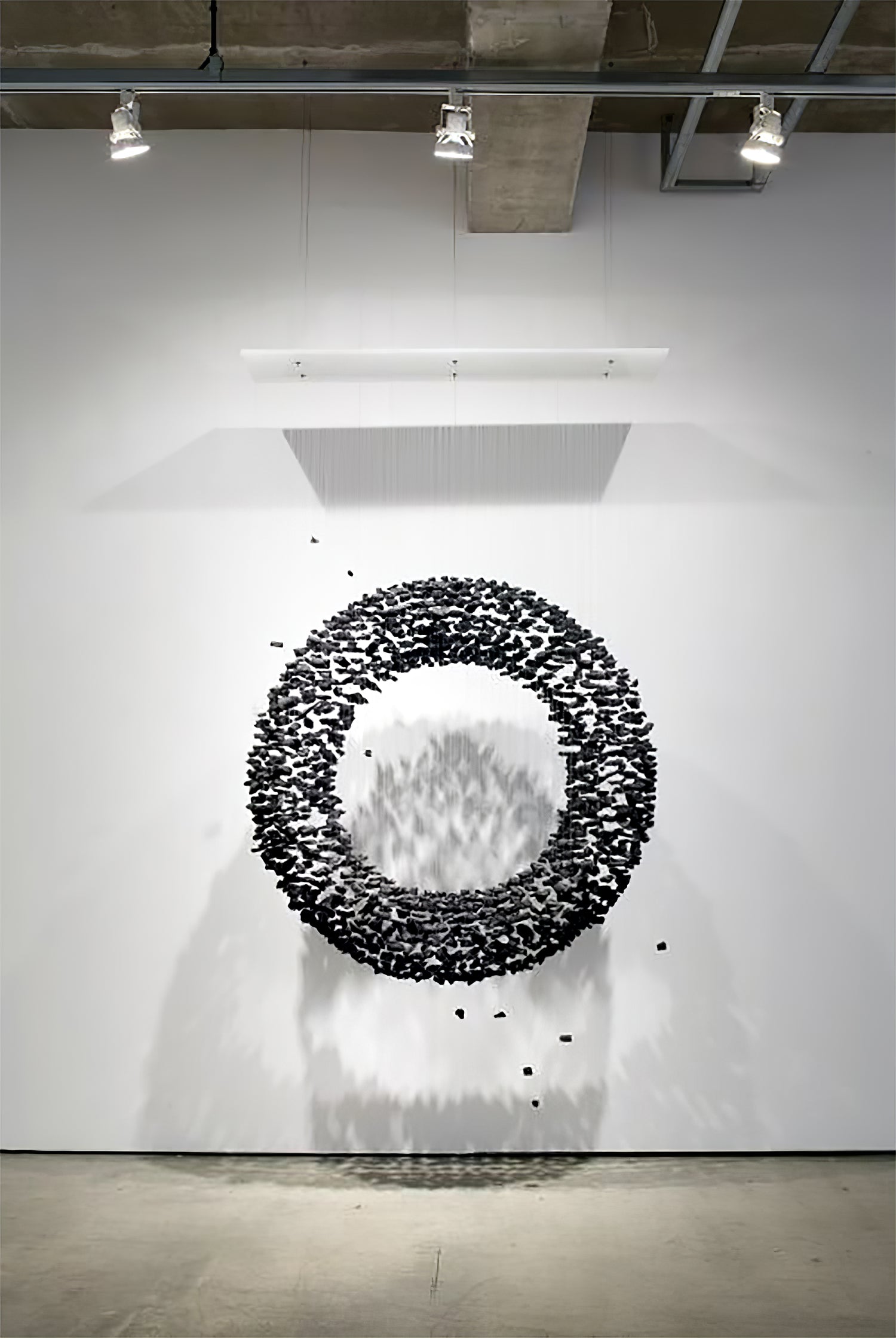 What begins with a single lump of charcoal extends into a line and then expands to fill a space. The design artist uses charcoal. with its dualistic connotations of creation and destruction. to suggest that everything in the world is connected and that the entire universe is contained within a single point. The implications are simple and clear.