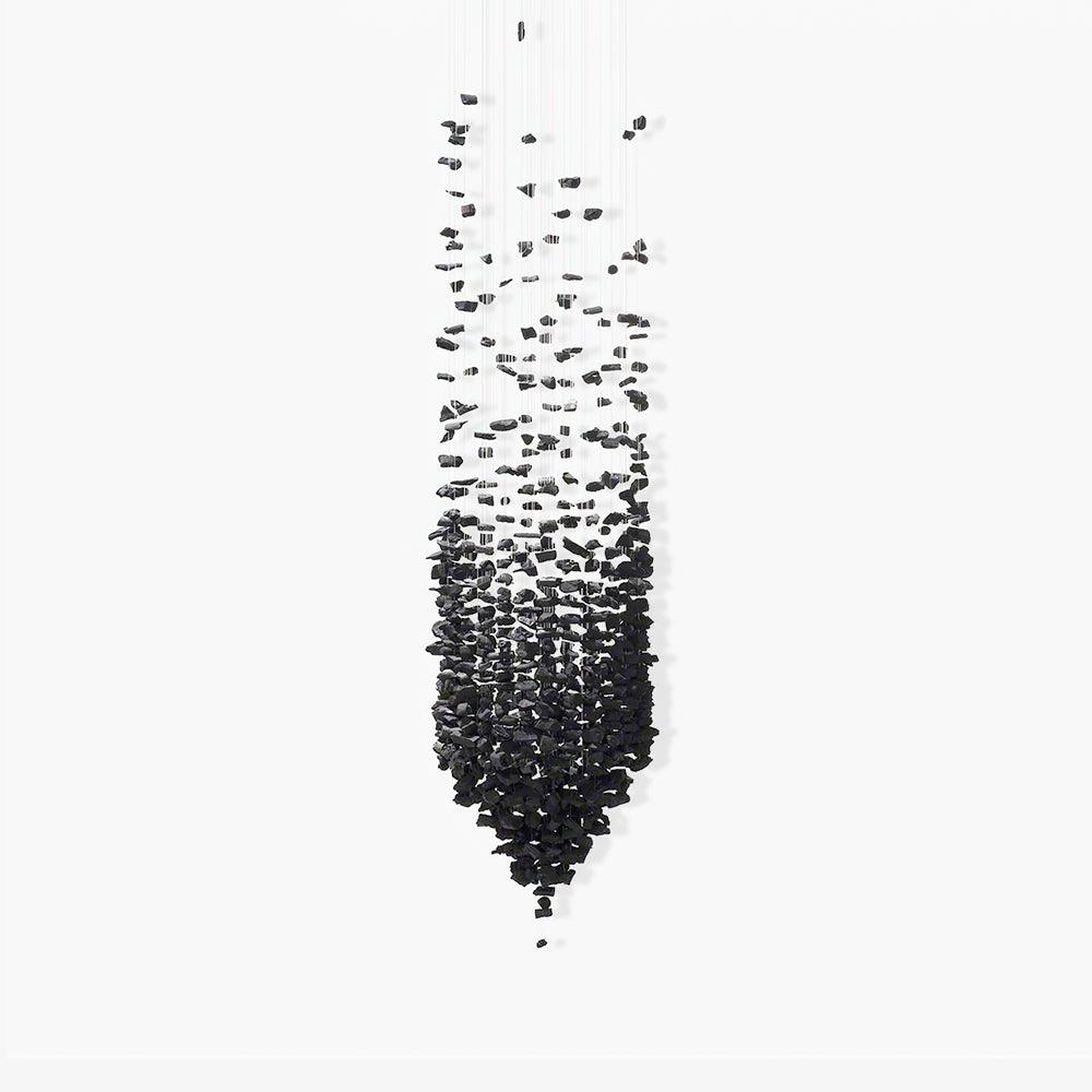 This Charcoal Chandelier G to L is a unique design piece that reflects the idea that everything in the world is connected and interrelated. Crafted from charcoal. each design is handmade and delicately expands to fill a space. creating a sophisticated architectural statement. Its minimalist aesthetic provides a stunning focal point in any room.