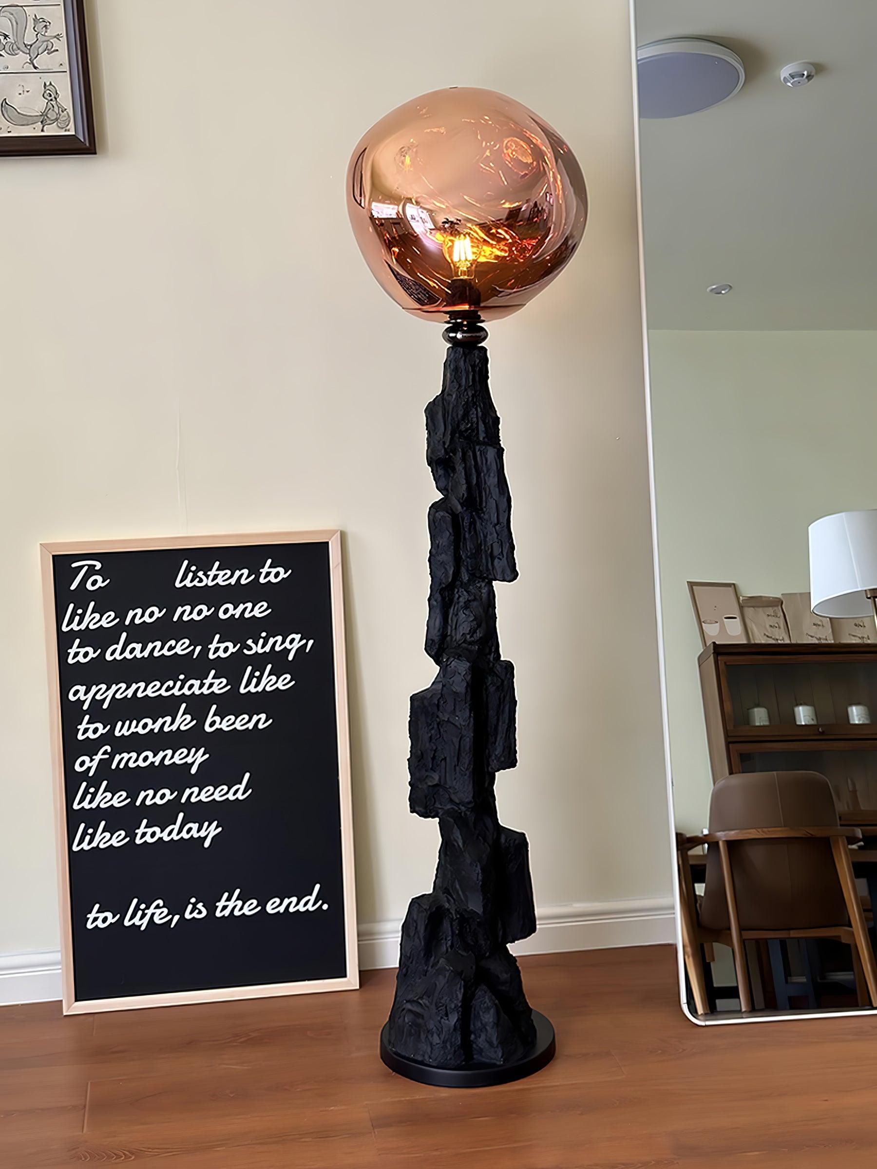 The Charcoal Lava Floor Lamp offers an eye-catching design with an illuminating. glass-like finish when lit up and a mirrored effect when off. Create a warm ambiance and enjoy a mesmerizing effect in any room with this stylish statement piece.