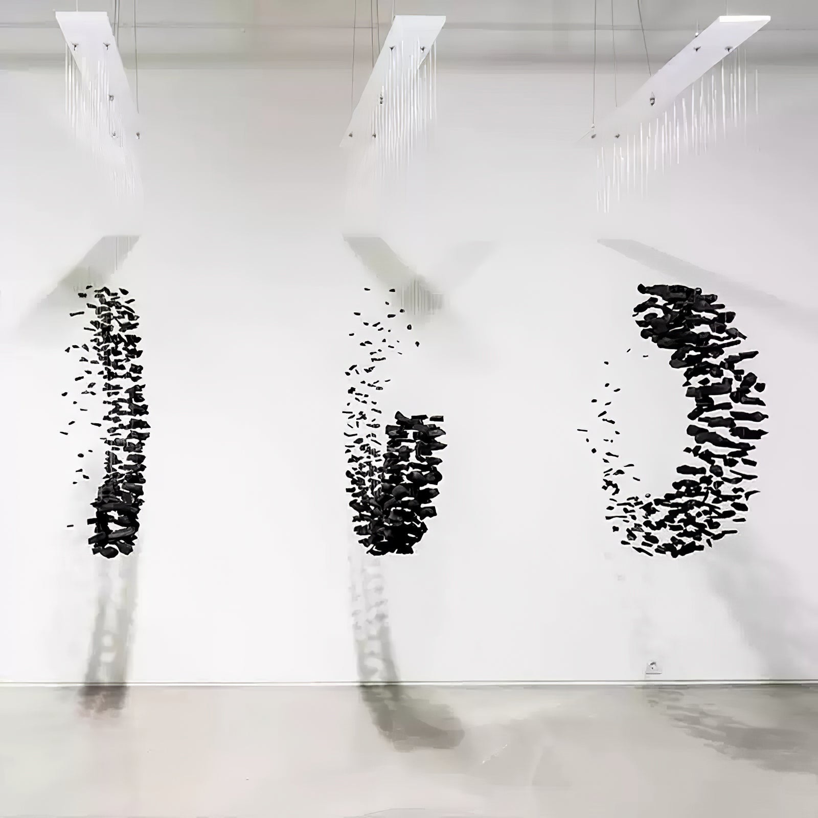 What begins with a single lump of charcoal extends into a line and then expands to fill a space. The design artist uses charcoal. with its dualistic connotations of creation and destruction. to suggest that everything in the world is connected and that the entire universe is contained within a single point. The implications are simple and clear.