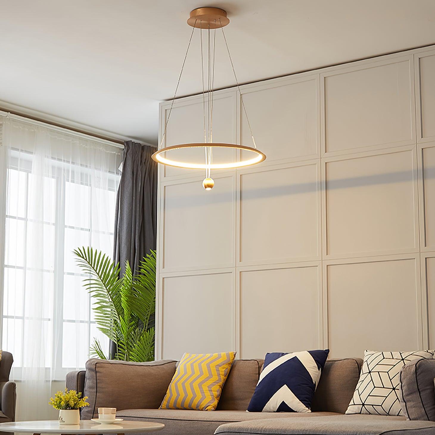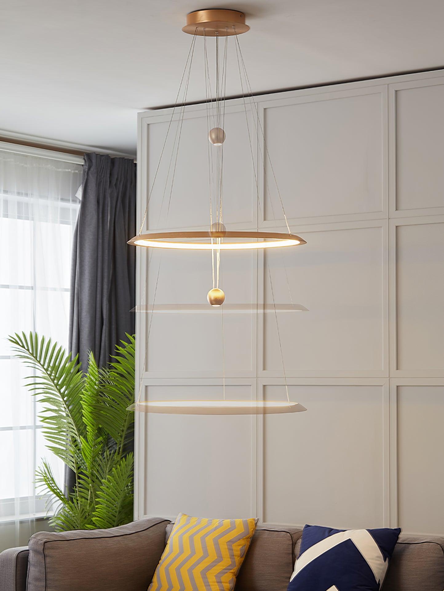 Elevate the atmosphere of larger spaces in your home with the Circular LED Chandelier from Vakkerlight. Simple. yet elegant all the same. this minimalist modern piece was designed by designer in 2017. It consists of a set of thin wires that spread out evenly. each connecting to the perimeter of a large and thin ring shade. The underside of the shade is lined with integrated LEDs that allow it to come to life when in use. emitting a bright and even layer of light throughout the immediate space below.