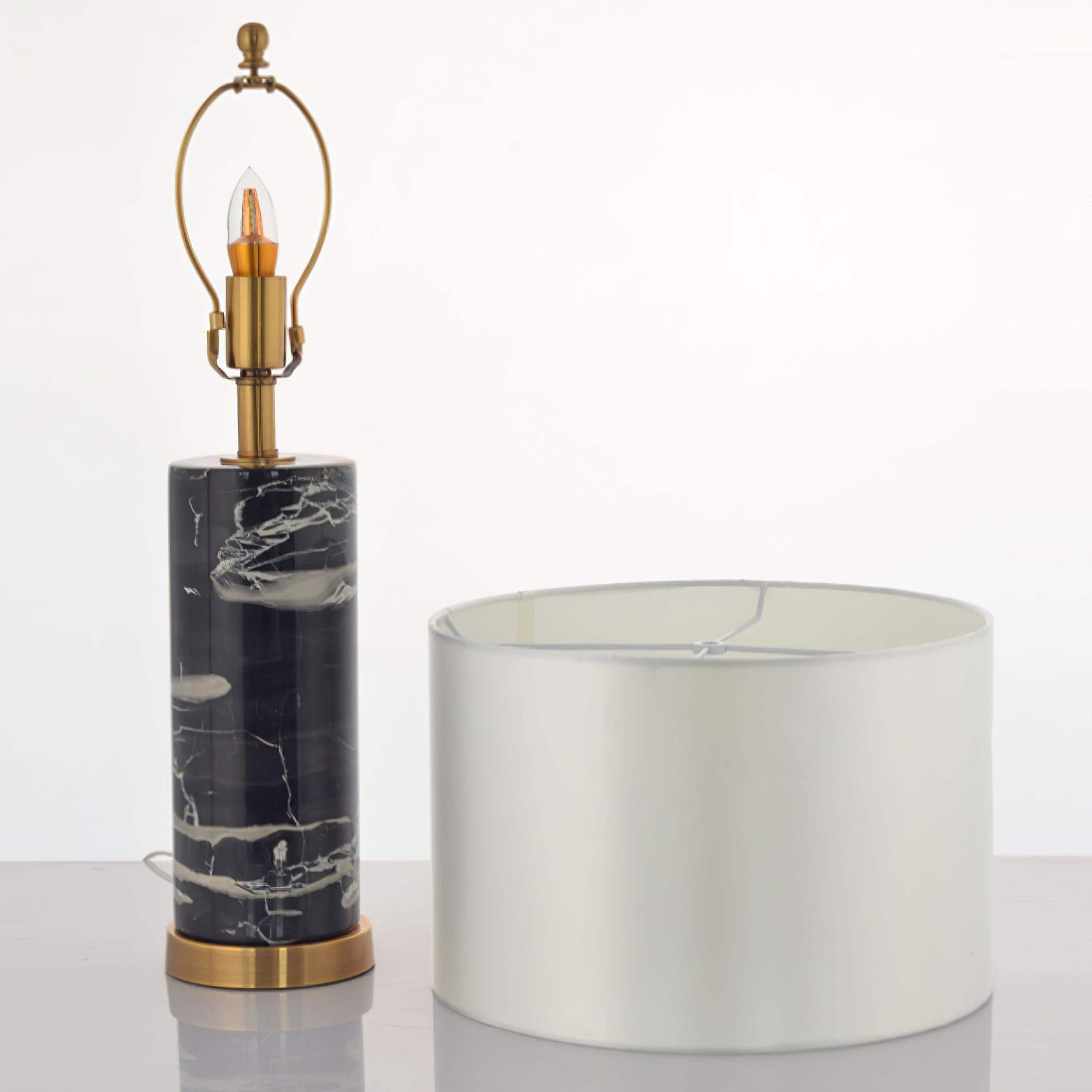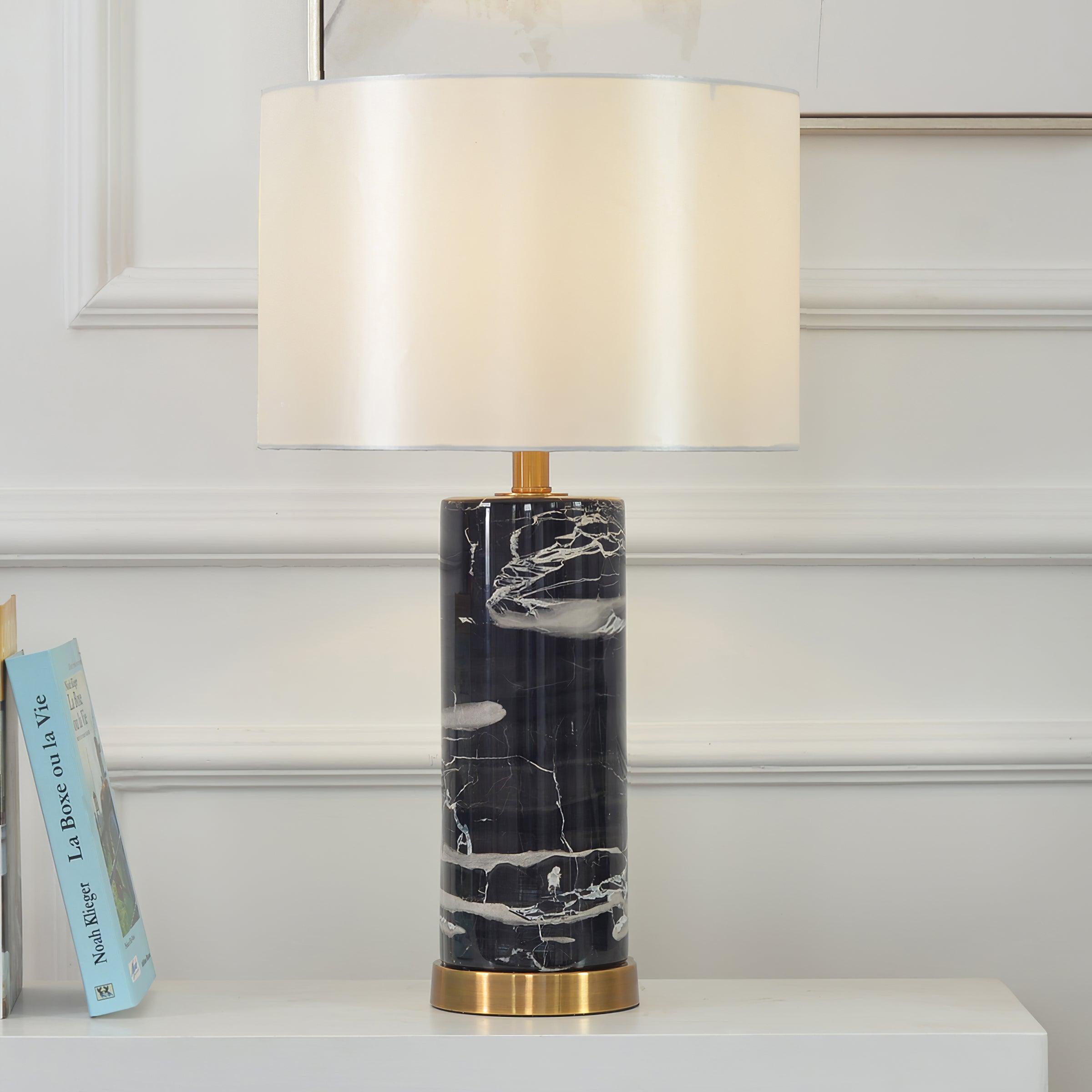 With its sturdy. masculine base and full shade. this table lamp makes a strong impression. Perfect for a dark study. office. or serious library.