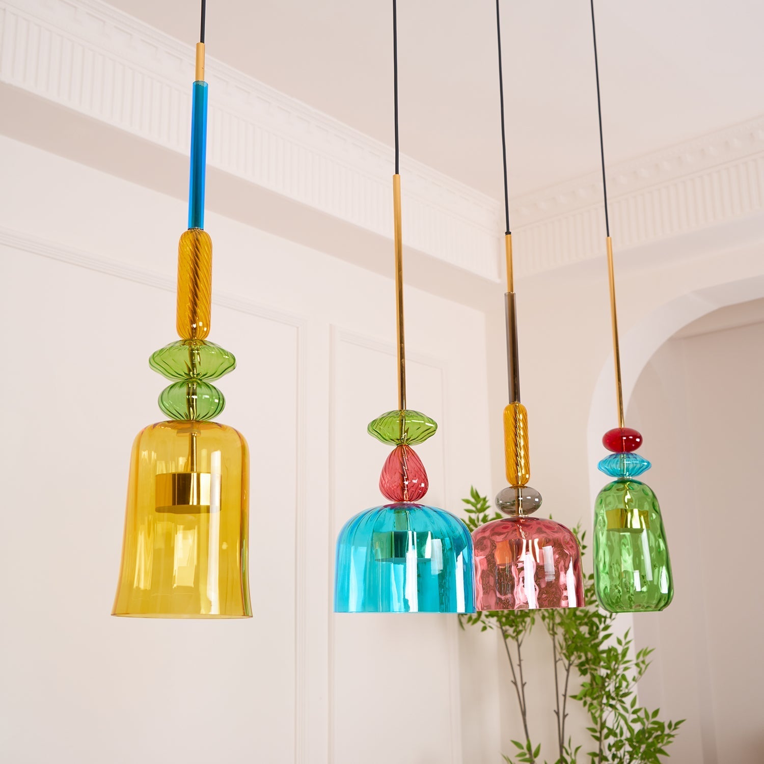 Hand blown stained glass composition. All the subtle variations in color effects and textures of this magical technology can be combined at will to create individual color designs. Each module embodies a different vibe and is unique. only vaguely similar to the craftsman's next creation. Spontaneity and improvisation are part of the project and are promoted as proof of handcrafting.