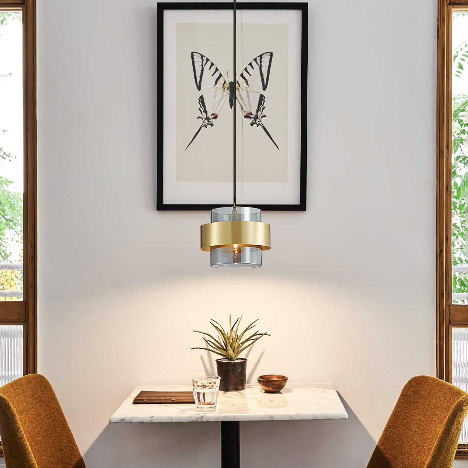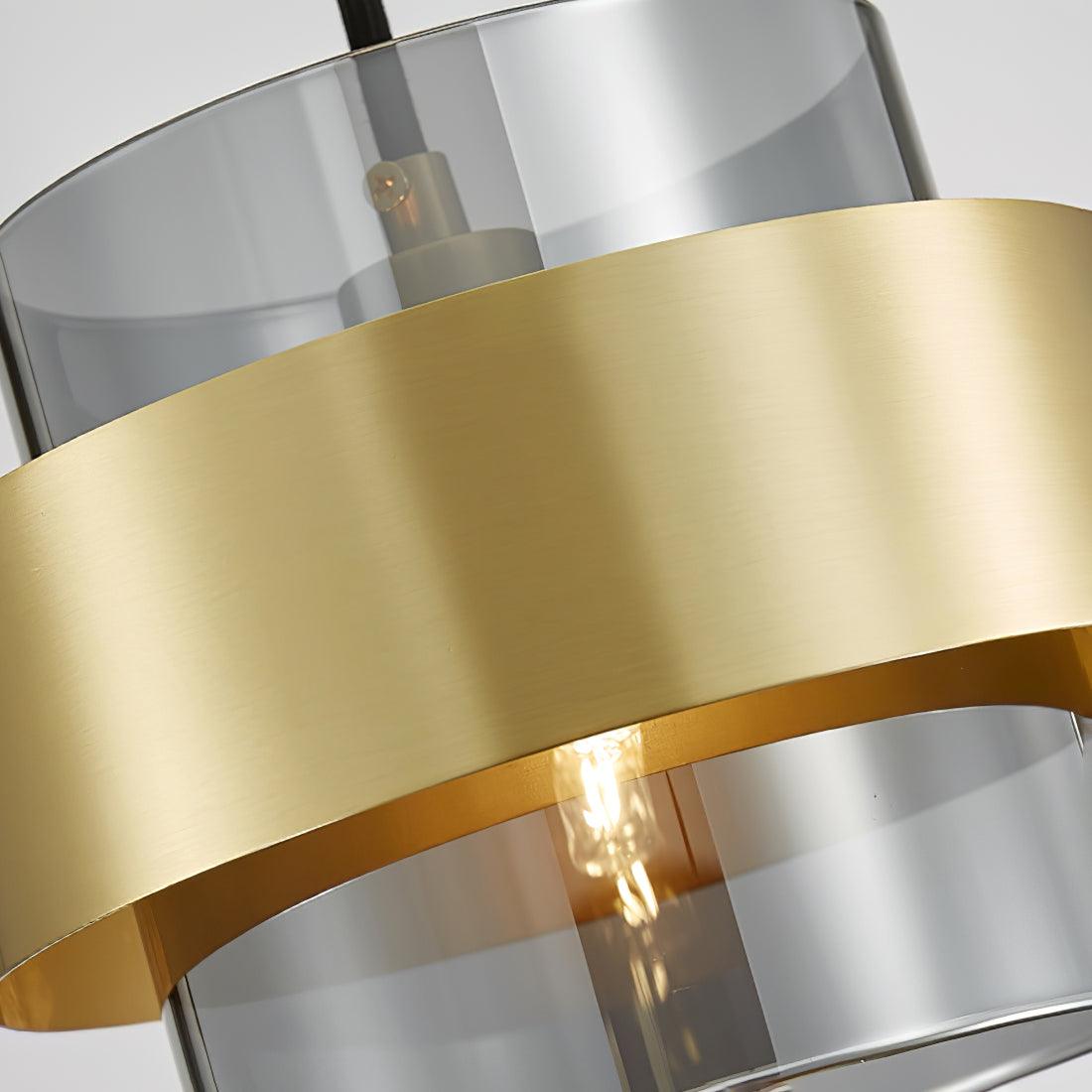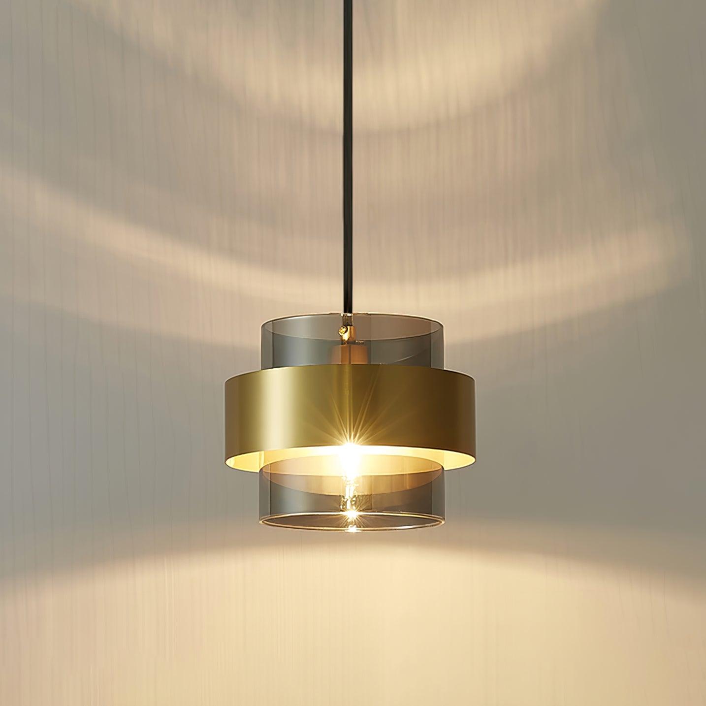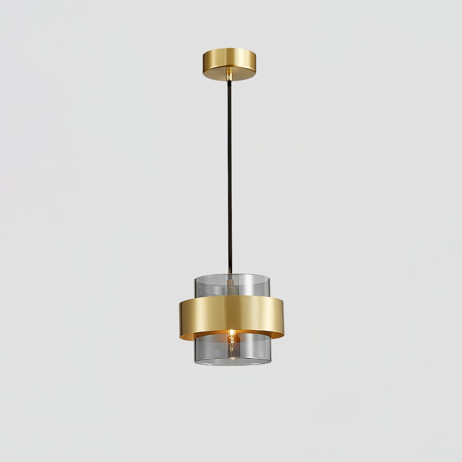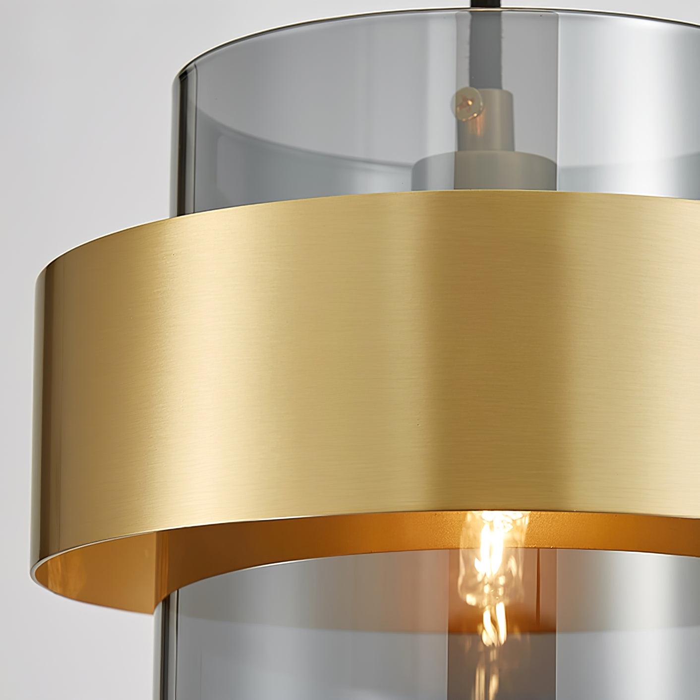 This contemporary Cylinder Down Pendant Lamp features a brass pendant and a classic grey glass shade. perfect for modernizing any space. Expertly crafted from high-quality materials. this lamp will bring a sophisticated touch to your home.