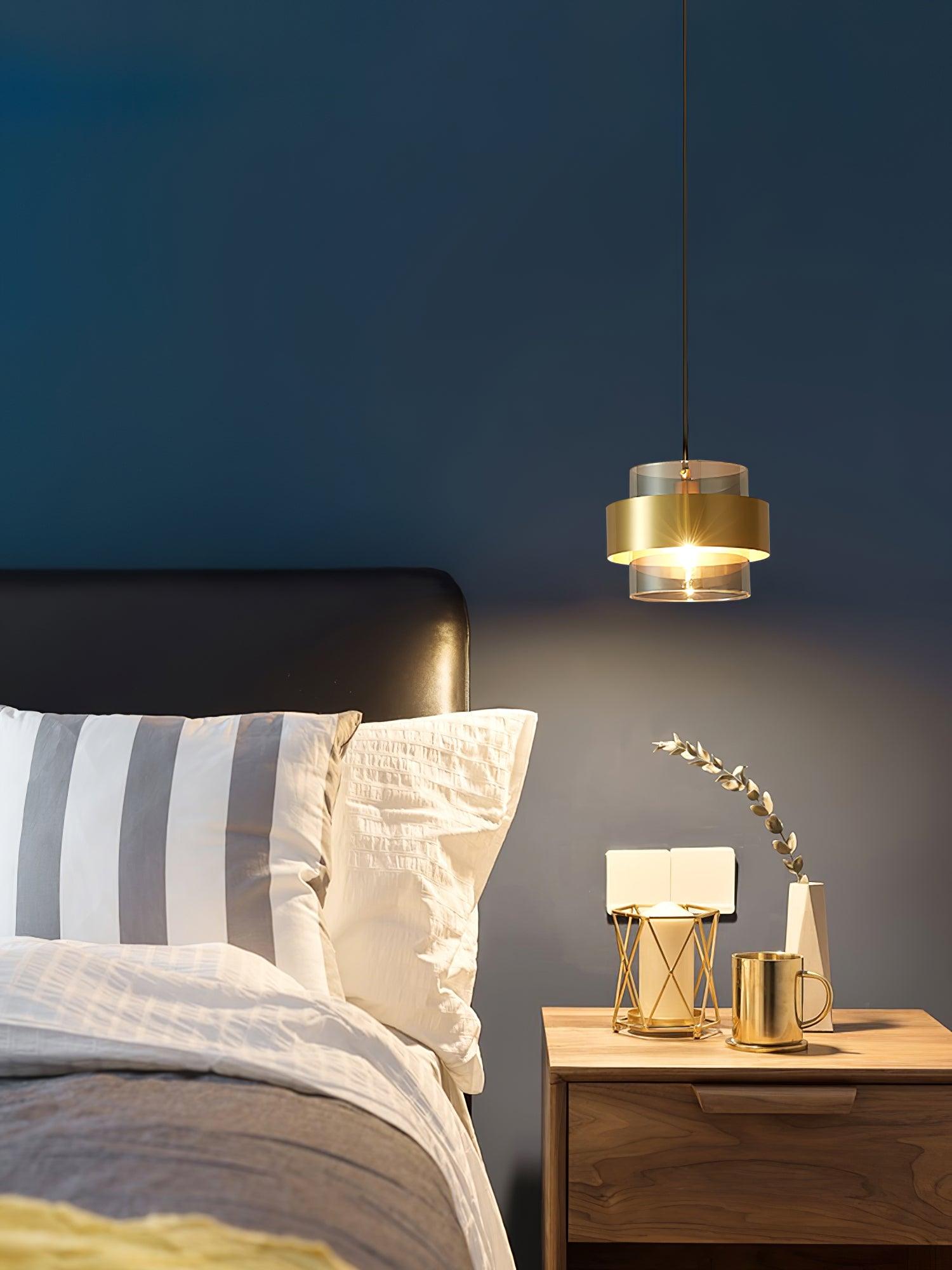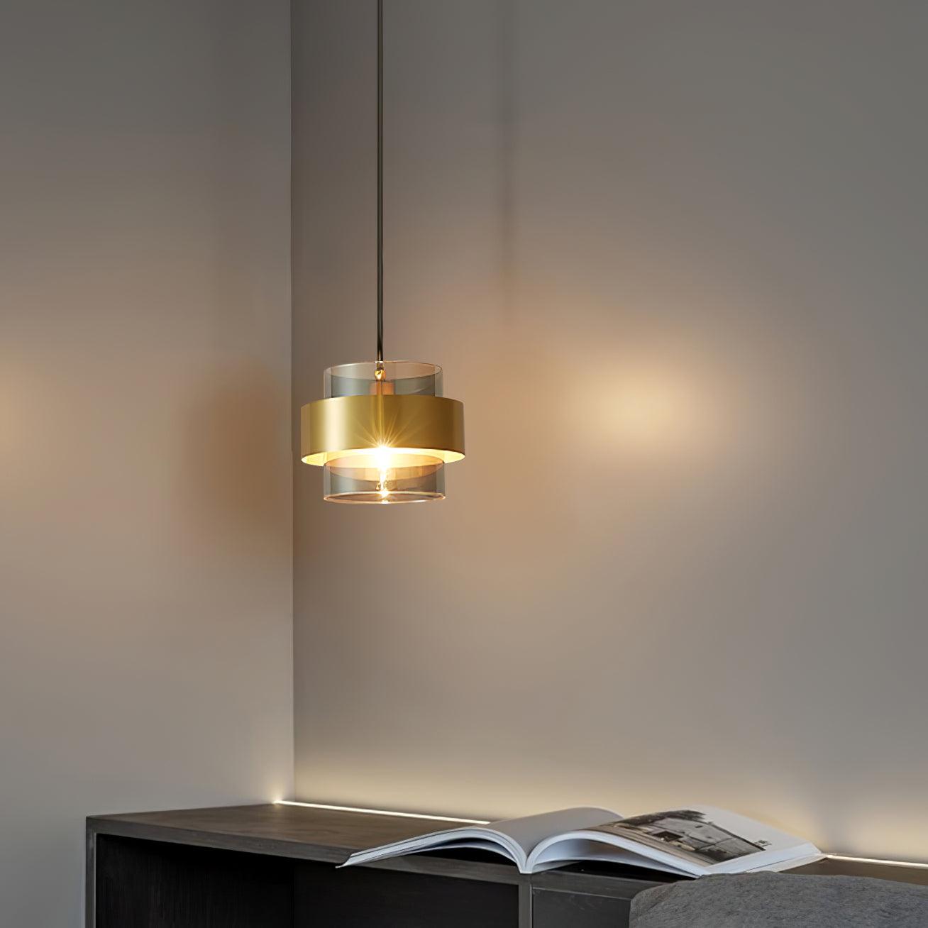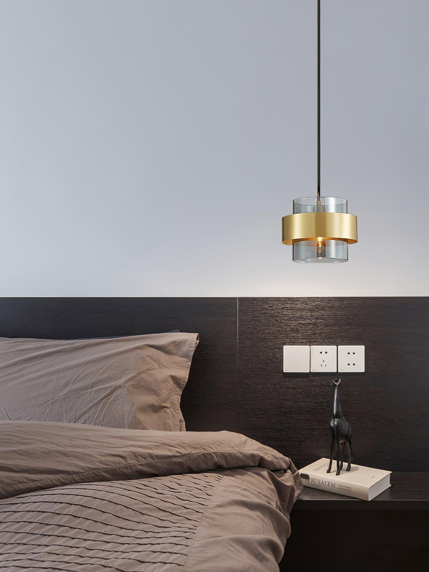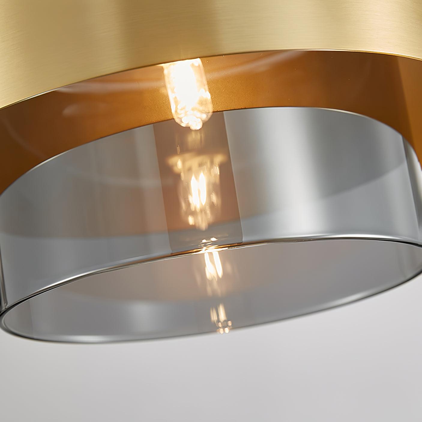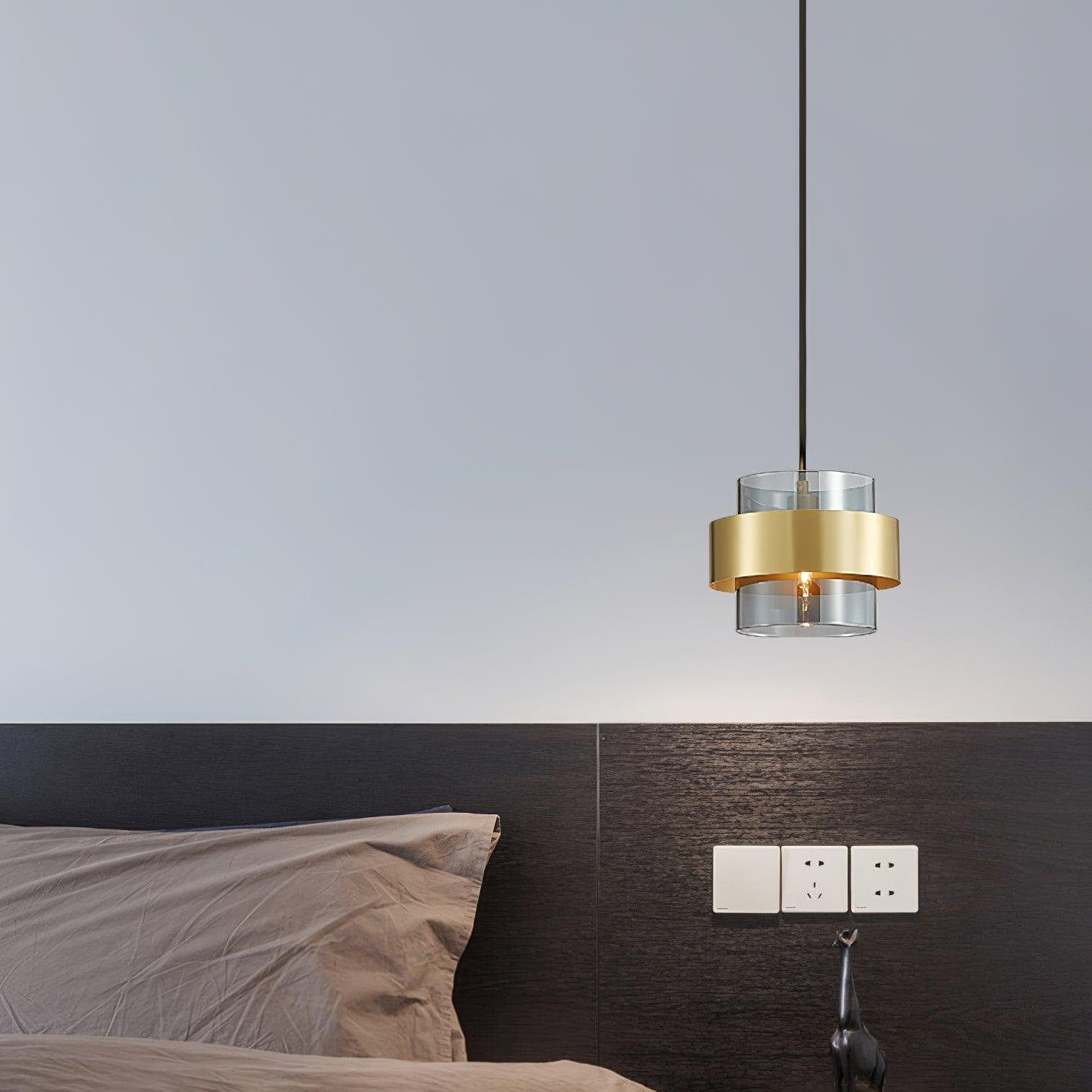 This contemporary Cylinder Down Pendant Lamp features a brass pendant and a classic grey glass shade. perfect for modernizing any space. Expertly crafted from high-quality materials. this lamp will bring a sophisticated touch to your home.