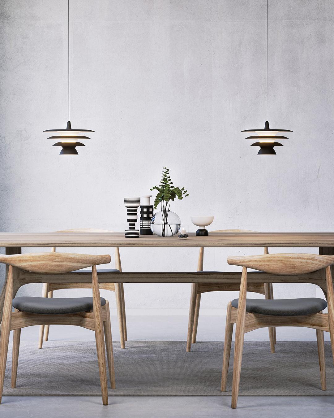 Elegant ceiling pendant from davinci made of metal with beautiful details in chrome. The design of the screen gives the light a pleasant spread where you place it.