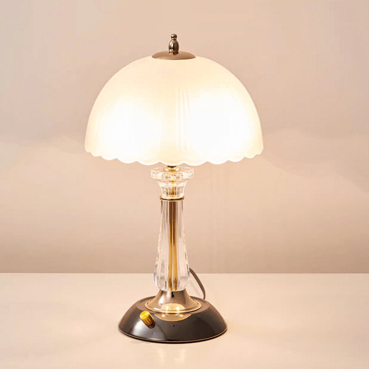 The Domed Glass Table Light boasts a timeless black color. adding a touch of understated glamour to any room. Its metal frame ensures durability and stability. while the glass elements provide a captivating visual appeal. The opaque lampshade casts a soft. diffused glow. creating a warm and inviting ambiance.