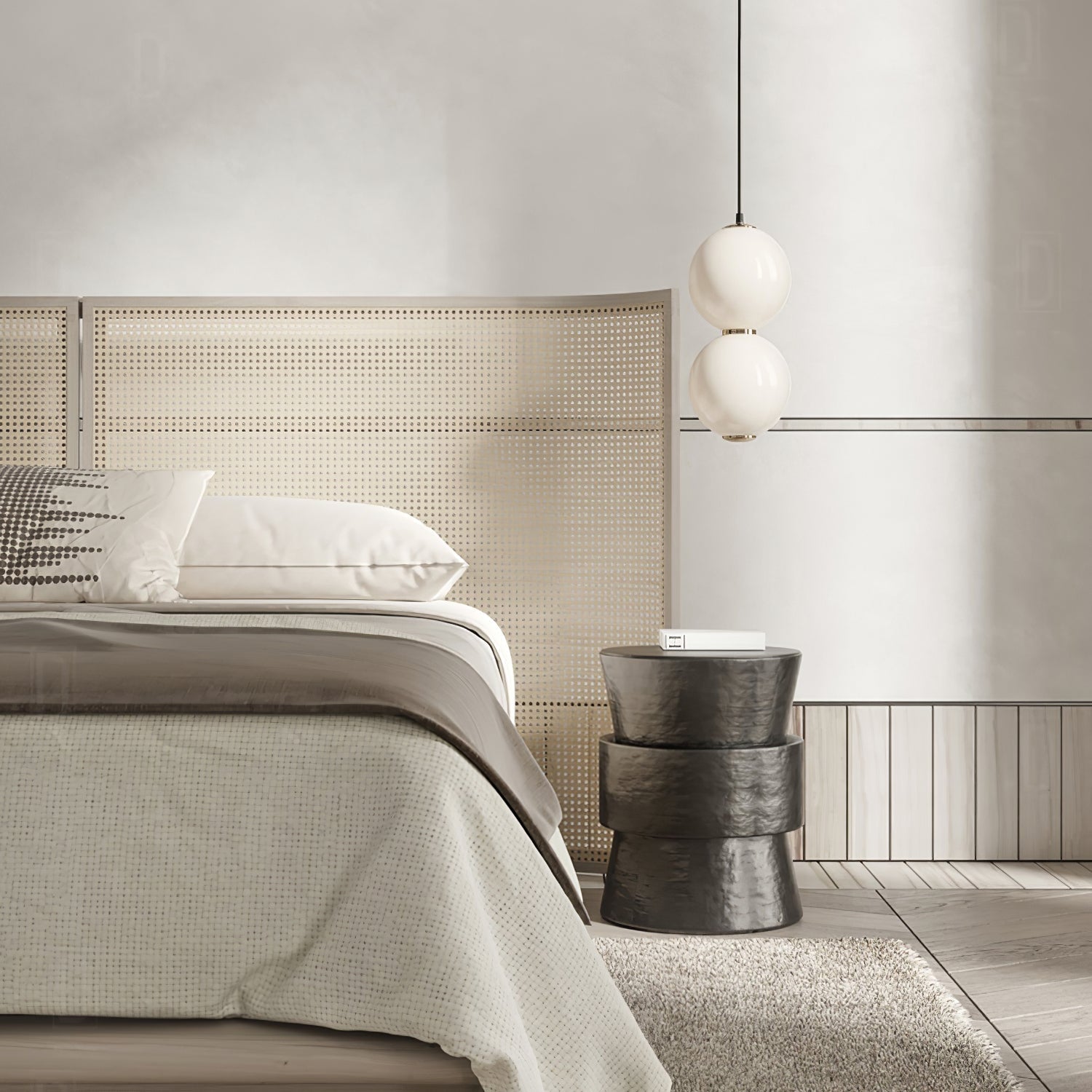Inspired by the elegance of simplicity. the Double Globe Pendant features two perfectly round glass spheres stacked vertically. This minimalistic design adds a touch of sophistication to any room. creating a seamless blend of modern aesthetics and timeless charm. Ideal for dining areas or living spaces. its clean lines and soft glow bring a sense of balance and harmony.