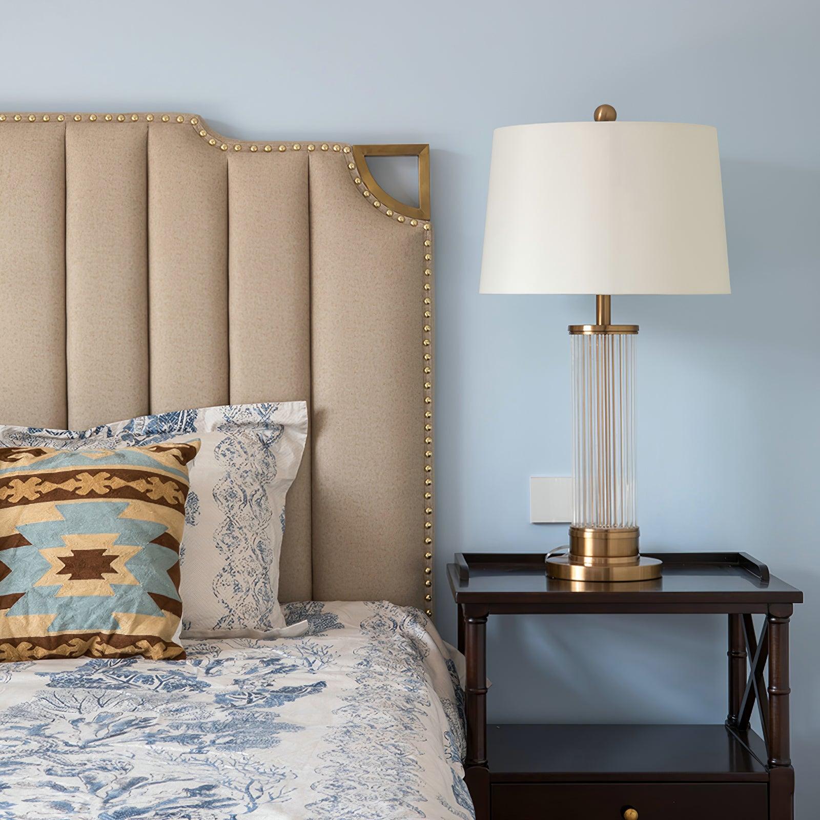 This table lamp adopts a classic shape of gloss golden plating metal base and a linen lampshade which creates a luxurious look for your home decor. The table lamp features a comforting feeling. perfect to be used as a bedside lamp. living room lamp. desk lamp. or nightstand lamp.
