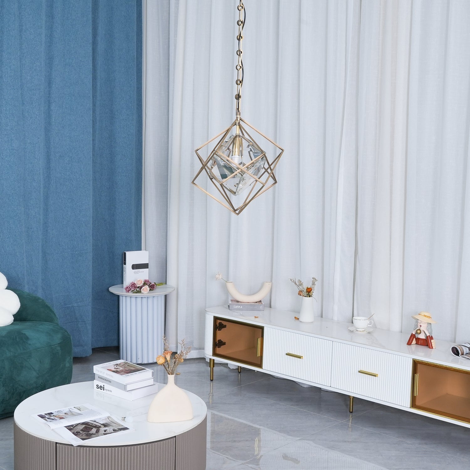 Lights are sprinkled throughout the interior of Epic's diamond-shaped. plated topaz prism. producing a dazzling effect. When turned on. the crystal diffuses the glare. and when turned off. the plated quality of the crystal creates a subtle yet stunning appeal. Finished in Forged Brass. the exterior hand-worked brass frame creates a simple silhouette. accented by Polished details. Epic's been given a new look with this more transparent. glam version. With a Gold Leaf outer frame and an inner diamond of thick bevel-cut glass around a sputnik core candle cluster. this beauty is sure to make heads look up.