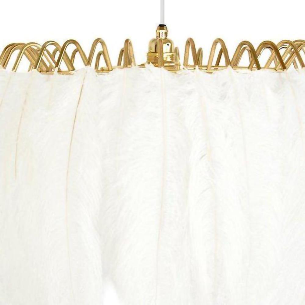 These glamorous feather pendant lamps feature luxurious black or white feathers held in place by a gold metal wire frame. Soft and delicate. the lights are reminiscent of the elegant feather boas and decadent hats of days gone by. but the design is totally contemporary. The Lamps feature a ring of authentic feathers secured by a series of metal gold arms which glow and glint seductively when alight.