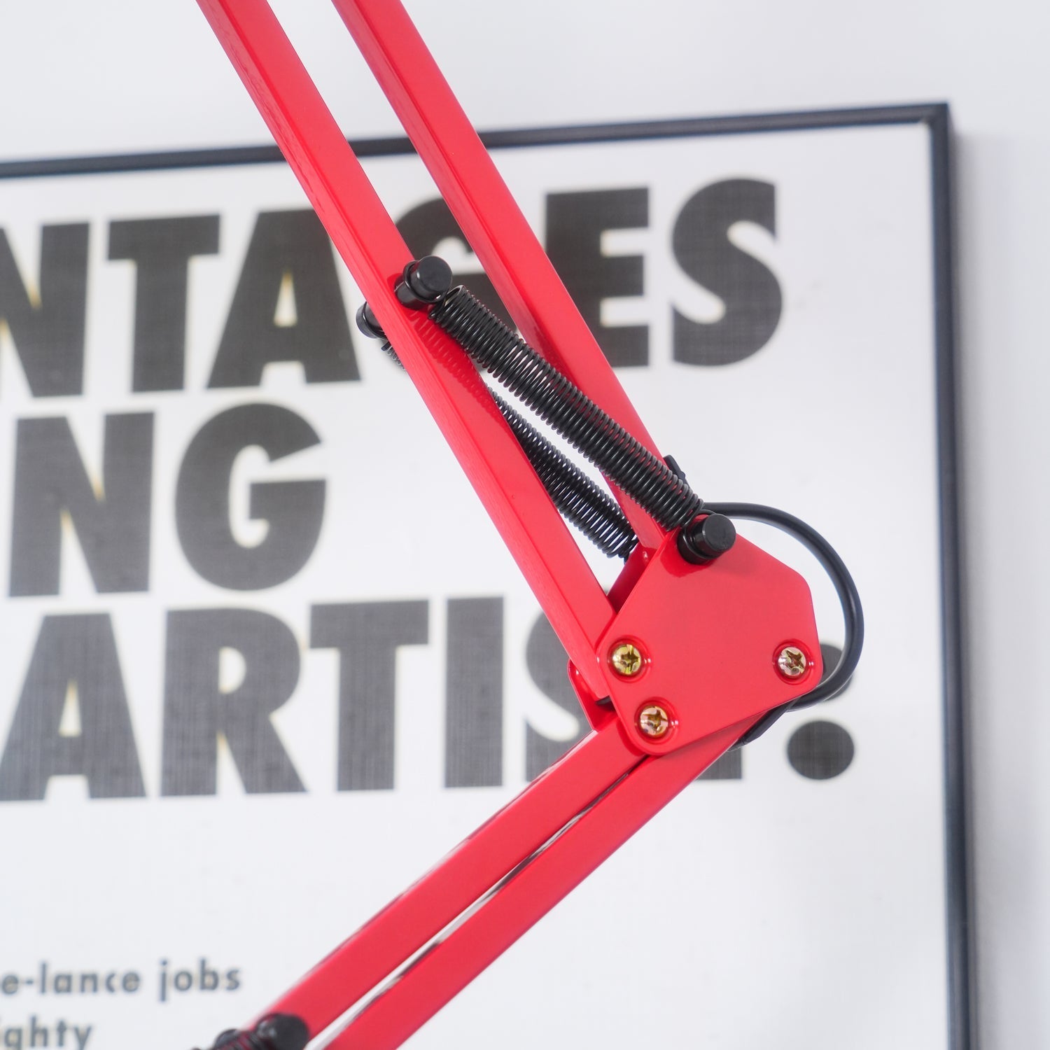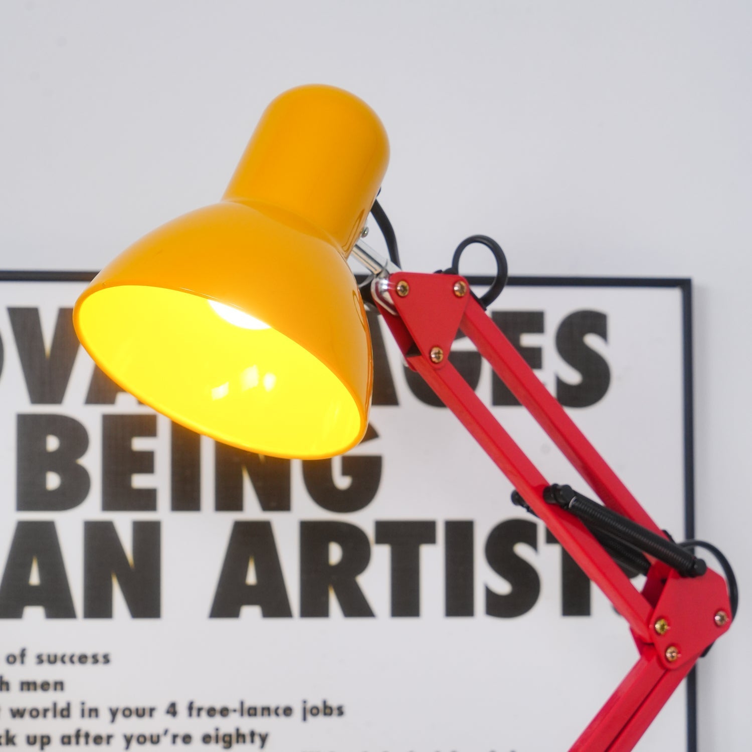FlexiBright Table Lamp brings a vibrant pop of color and flexible design to your workspace. Its bright blue base. eye-catching red adjustable arm. and sunny yellow lampshade not only provide necessary illumination but also a stunning decorative piece. Its multi-jointed arm design allows you to effortlessly adjust the head to the ideal angle and height. ensuring suitable lighting on your work surface at any time. Perfect for reading. working. or having as a creative partner. the FlexiBright Table Lamp is an ideal choice for improved efficiency and aesthetics.
