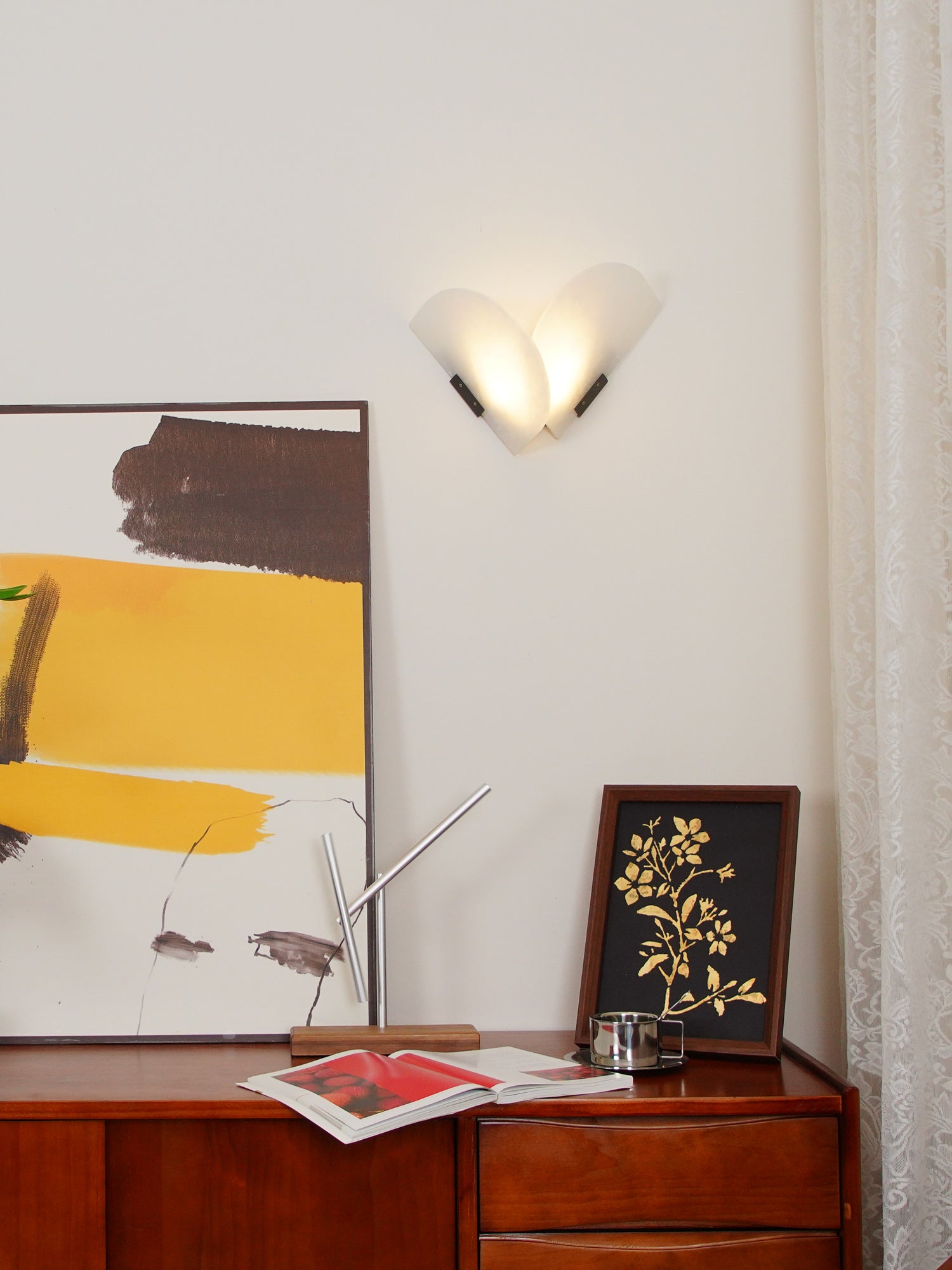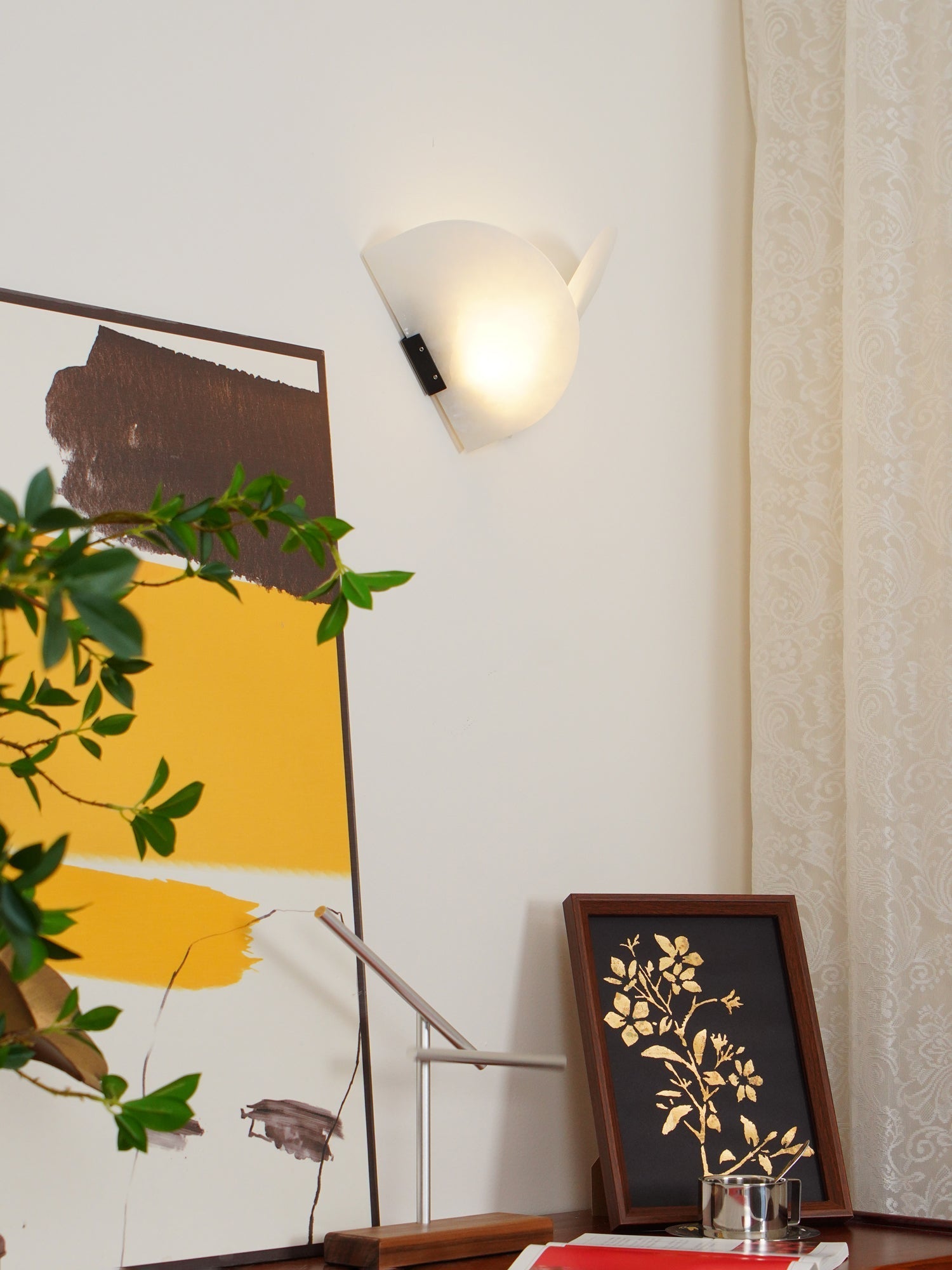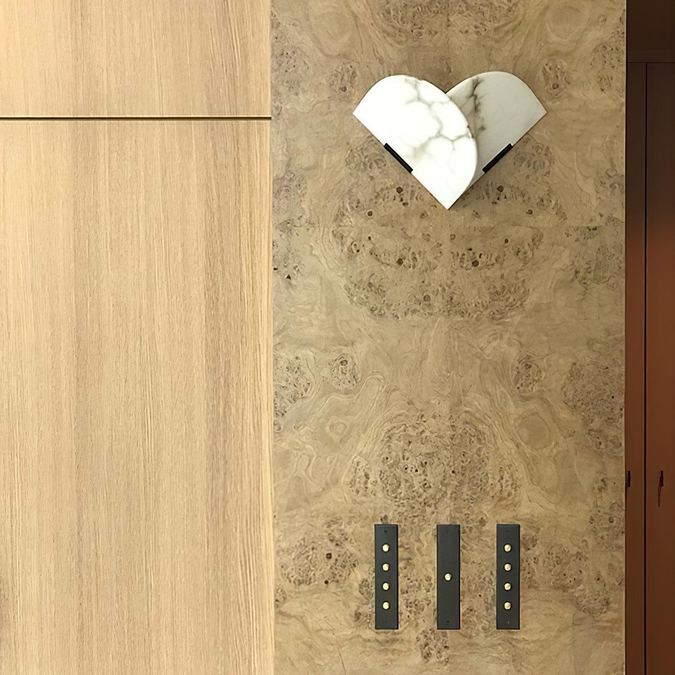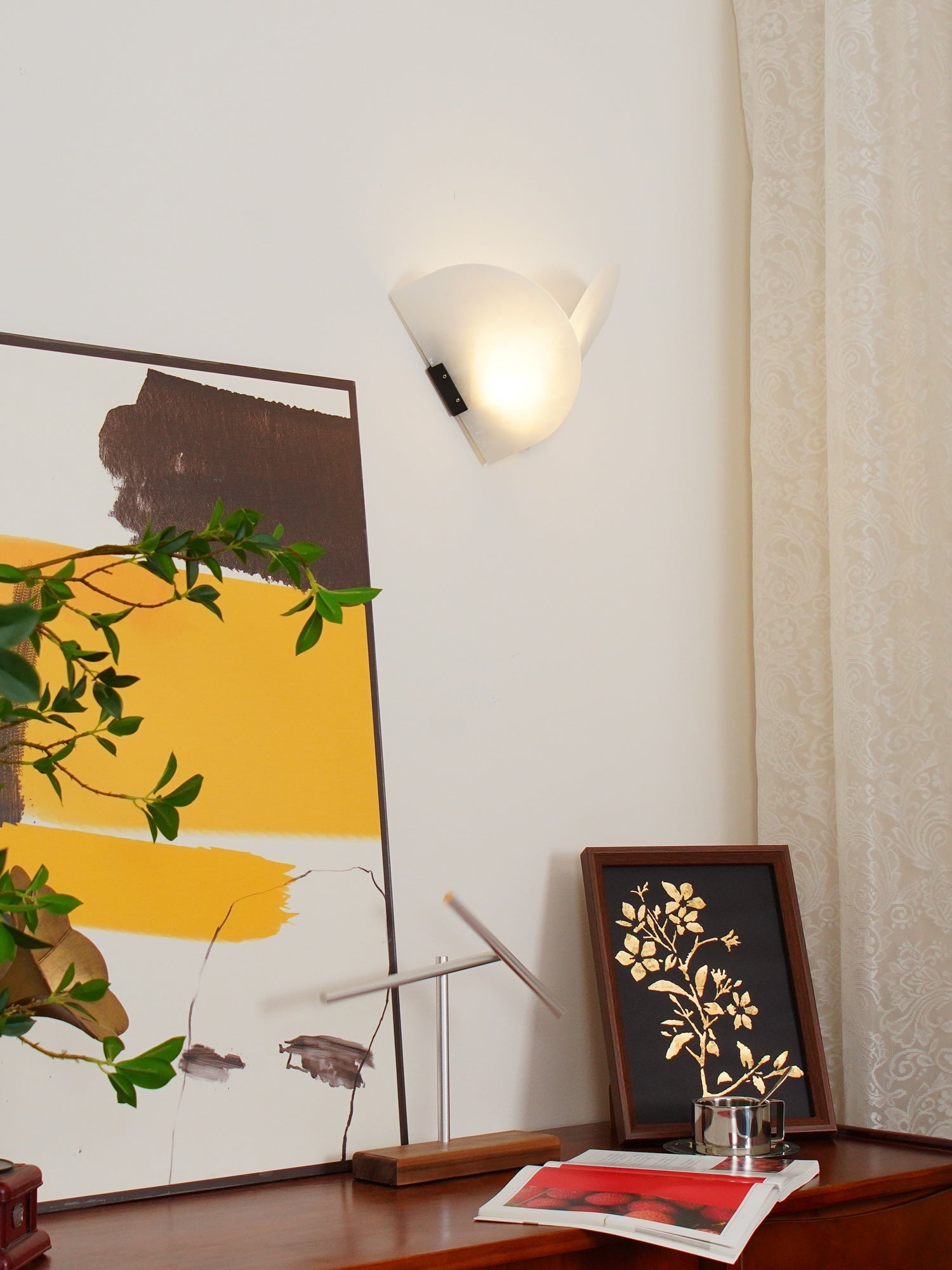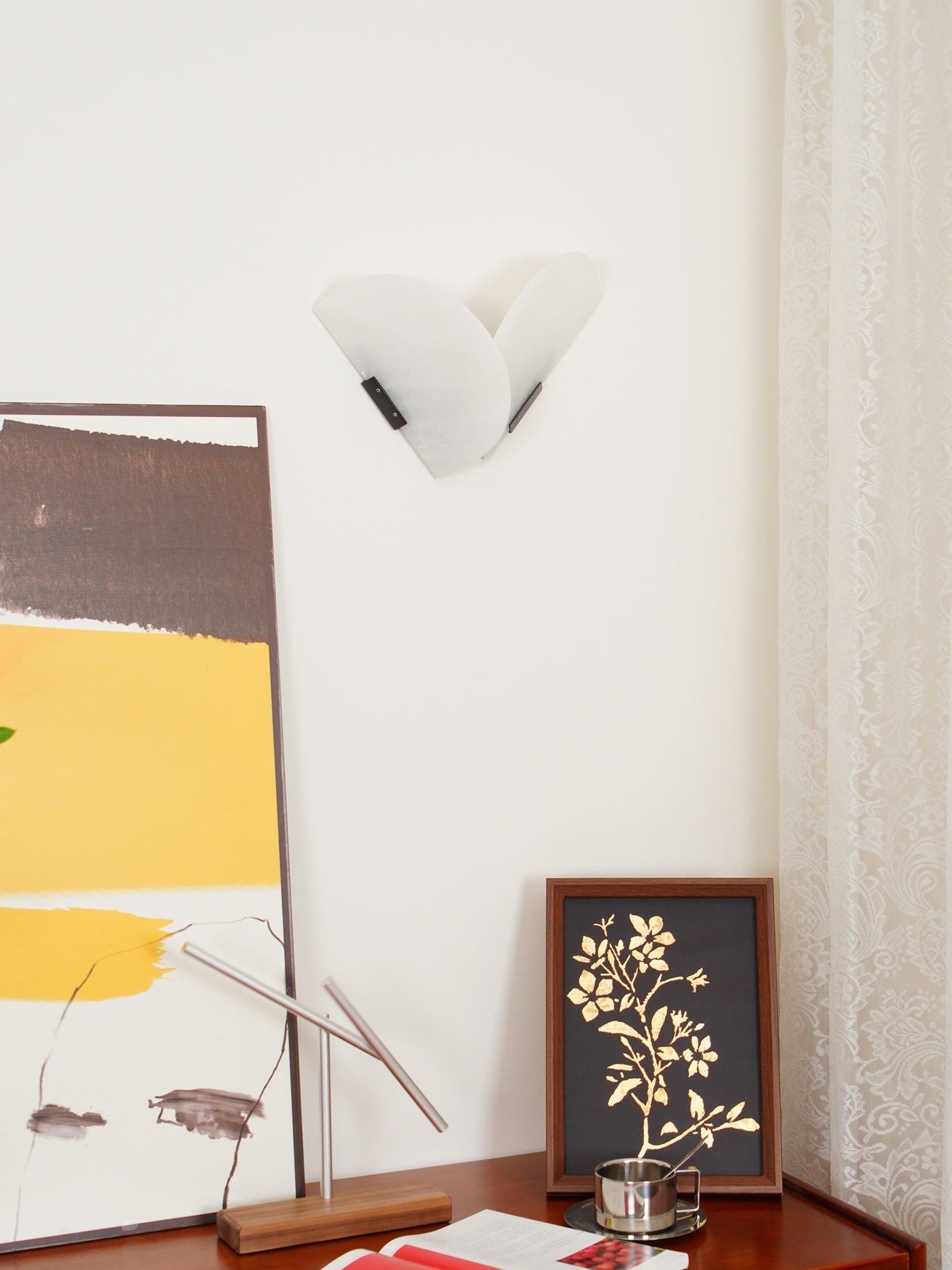 The Fly Gaby wall lamp offers a refined look with its contemporary design. Expertly crafted with brown veined alabaster and black metal. it's the perfect lighting solution for adding a touch of sophistication to any room. A white-veined version is also available upon request. Consists of two alabaster panels. The hue of alabaster will look different in every light.