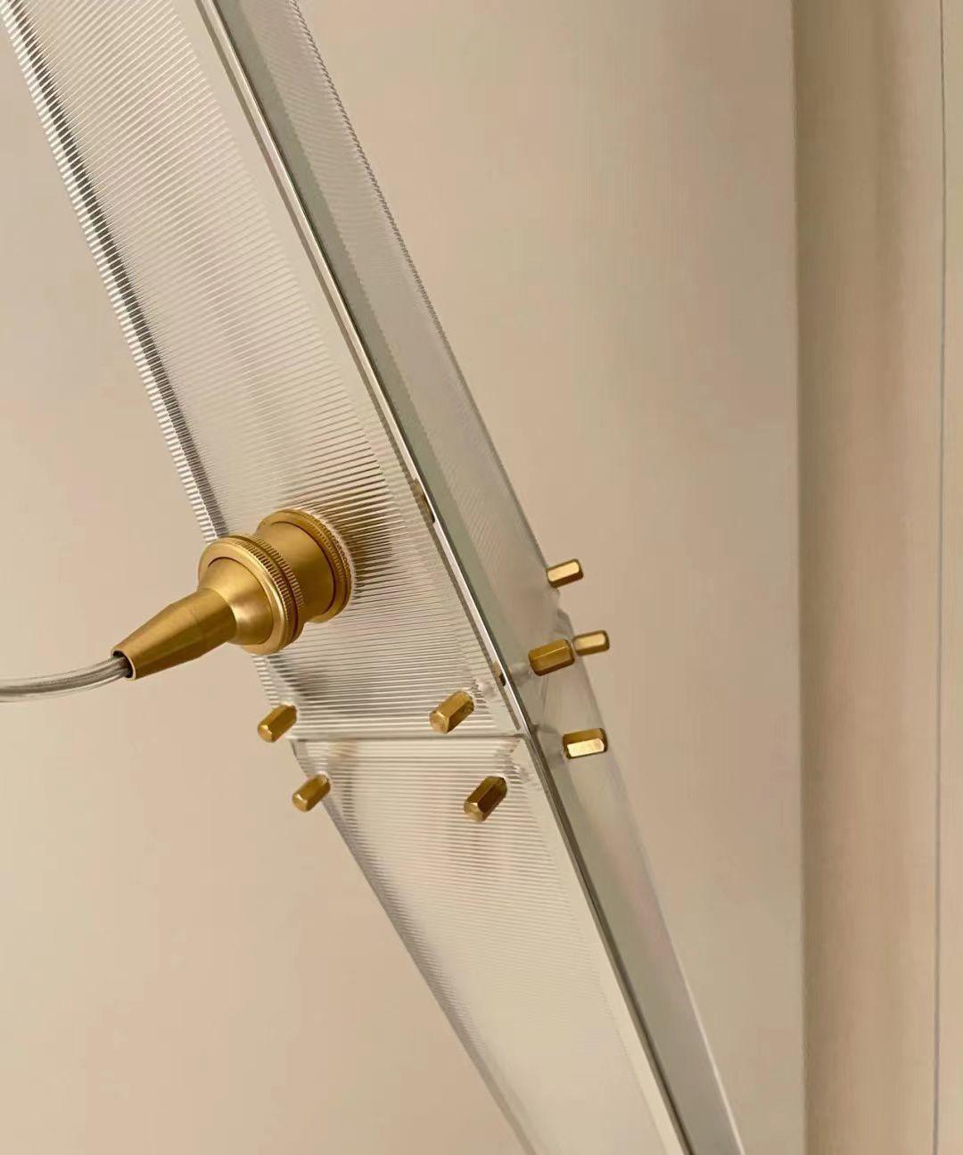 To explore the balance between the tradition and modern. he fold stainless steel into extremely long cone. through exquisite cutting. acrylic with wavy texture was fixed on the stainless steel frame. deliberately exposing all the components to create a delicate and violent conflict.