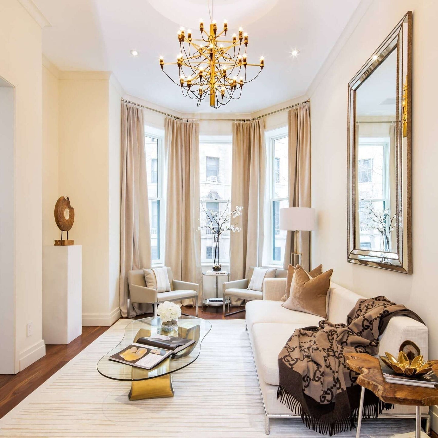 Since 1958. this iconic 2097 Suspension Lamp design has served as an ultra-modern representation of the traditional mid-century chandelier. Every detail of this state-of-the-art ceiling light is exceptional. from the mirror-polish finish of its main steel structure to the way each bulb is fitted with its own horizontal arm and the graceful wiring meanders down the stem.