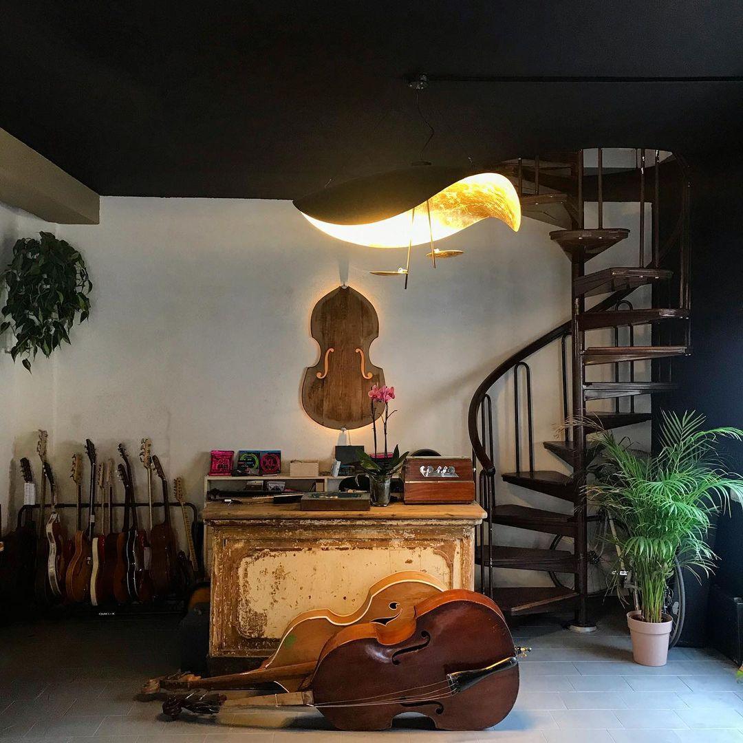 The Giorgio Pendant Light features a gracefully curving shade that embodies fluidity and the accuracy of the motion required to draw a line. with a disc shade extending out with a metal rod. Finished in White with the option of a White. Satin. or Gold rod. May be ceiling or wall-mounted.
