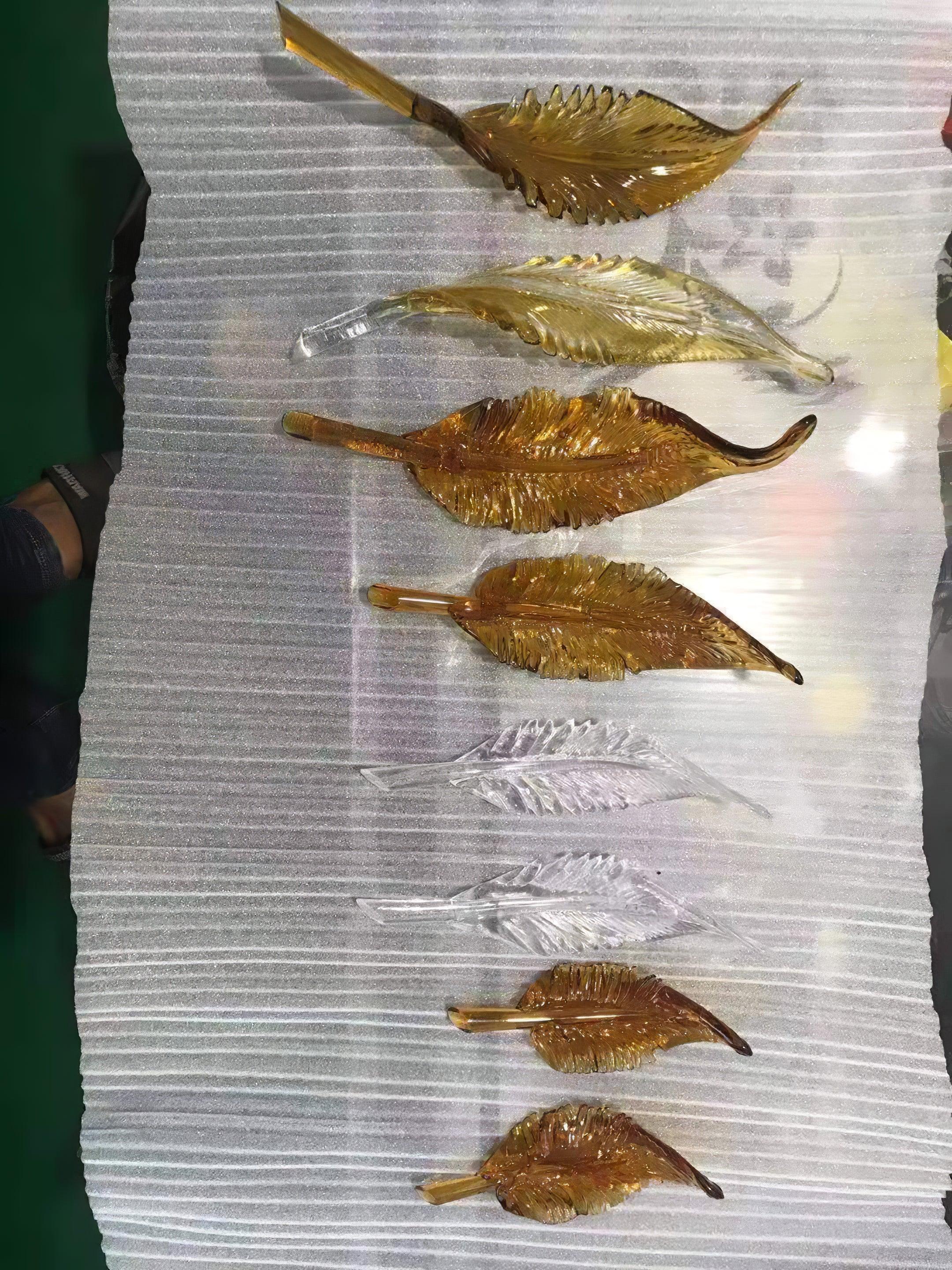 Elevate your home or business with this stunning Glass Feather Chandelier. Handcrafted with delicate blown glass feathers. this chandelier creates a charming and elegant display. Perfect for hotel lobbies. shopping centers. villas. and other upscale venues. Choose from a variety of colors to suit your decor. Easy to install with all necessary hardware included.