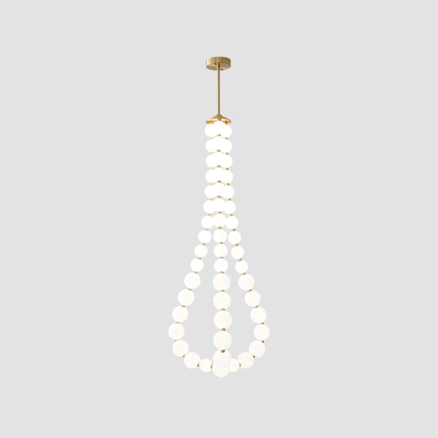 This stylish Glass Pearl Necklace Chandelier illuminates any space with a brass-constructed base and white glass orbs. Its unique design will draw admiration and attention. merging a distinctive style with universal and timeless appeal. Its unique lighting forms will highlight the interior of your home. creating a warm. cozy atmosphere for gatherings and quality time with family.