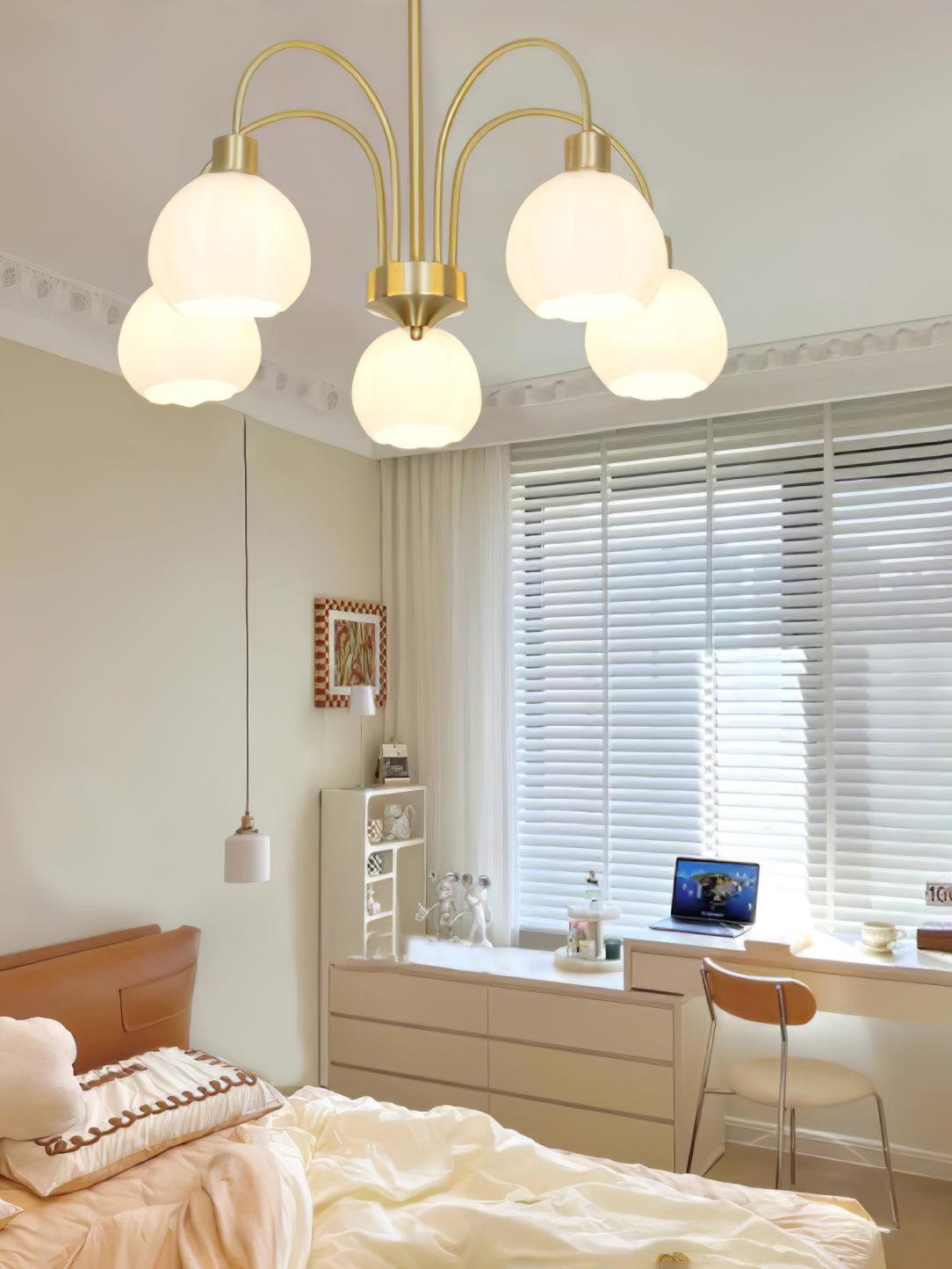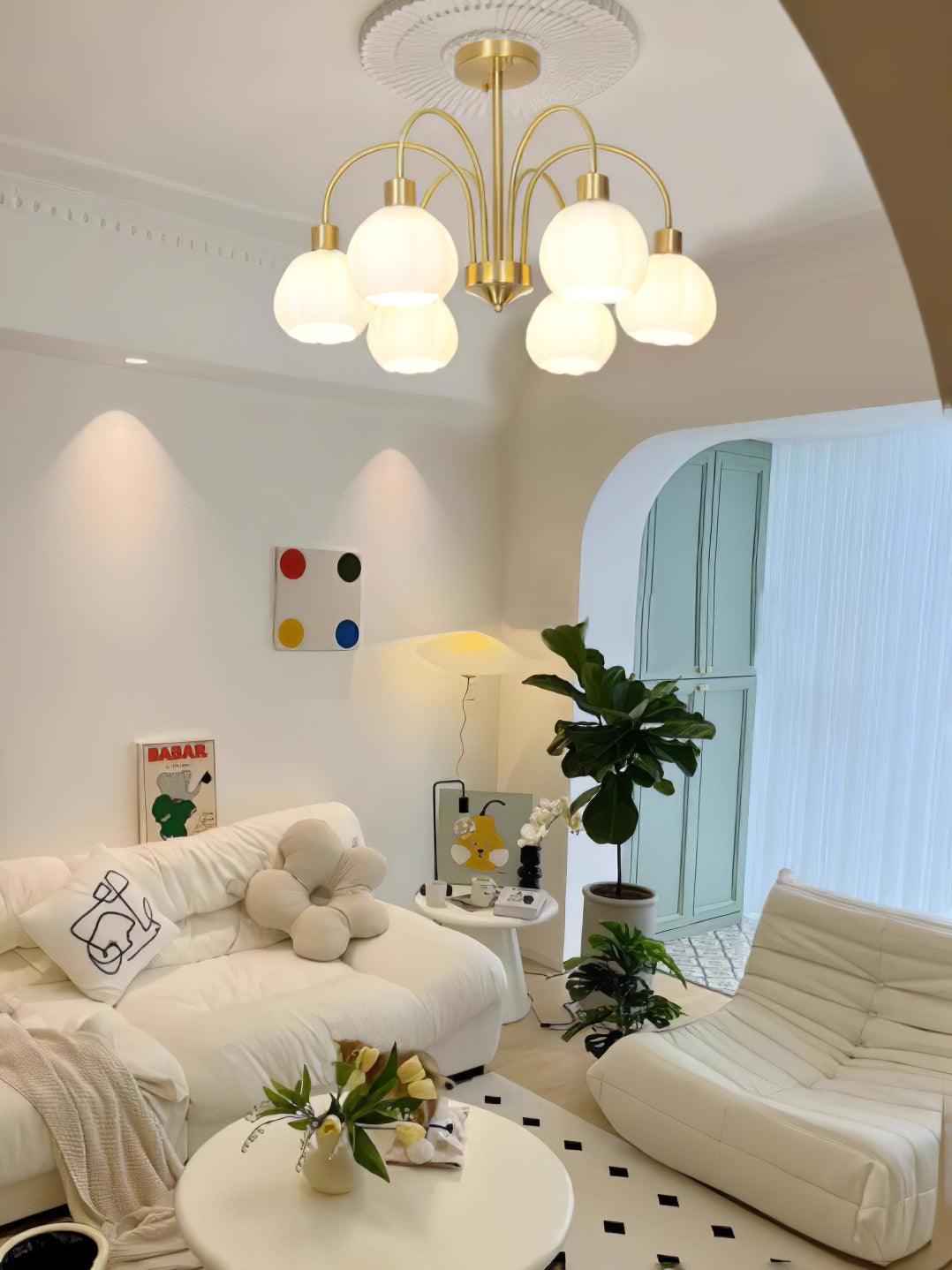 This Glass Pumpkin Gold Chandelier is an elegant and timeless piece. perfect for adding a luxurious touch to any room. Its sophisticated gold finish accentuates the luminous glass pumpkins. providing a beautiful. metallic glimmer that will draw the eye of any guest. With its classic design. this one-of-a-kind chandelier provides a timeless look of luxury.