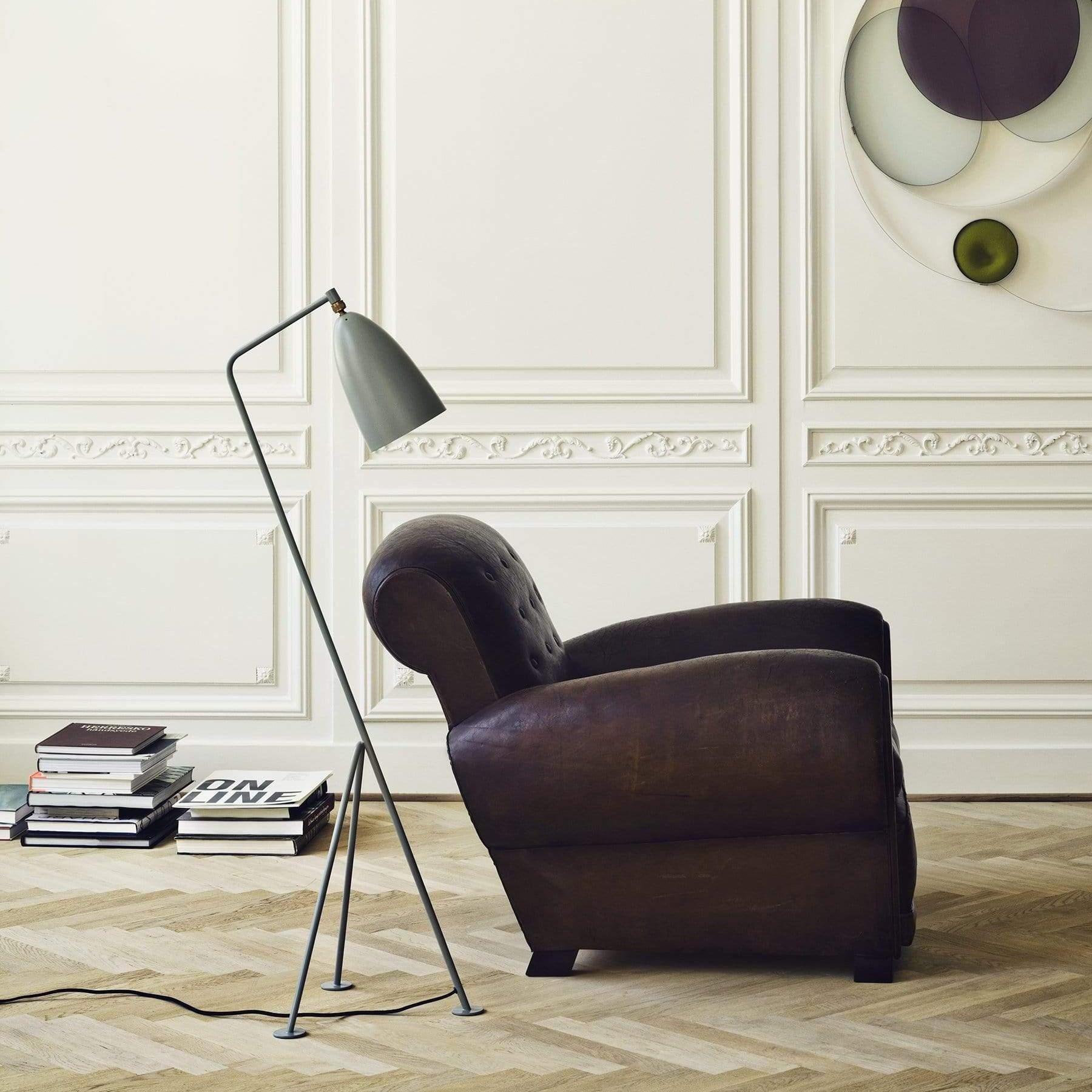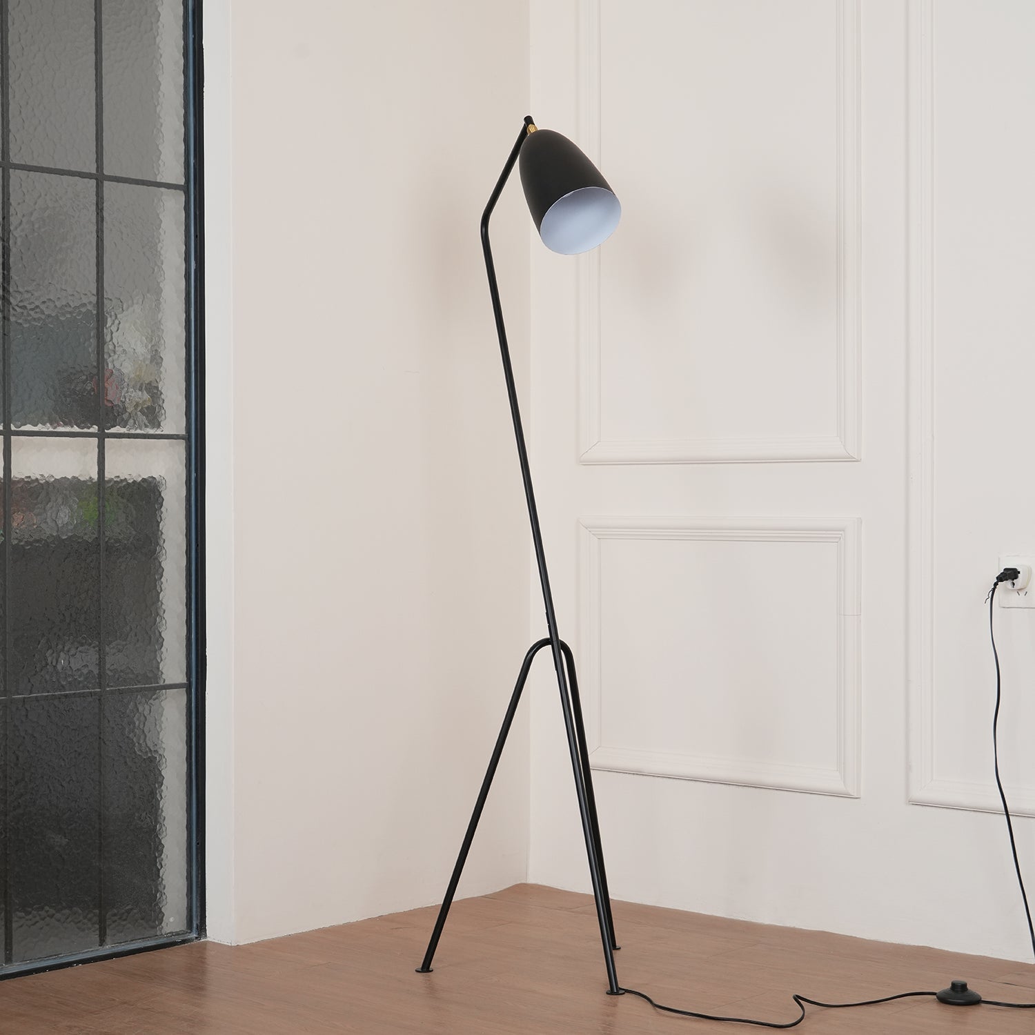 Crafted entirely from premium metal. this floor lamp features a slender. angled body that resembles the poised stance of a grasshopper ready to leap. Its minimalist design is finished in a classic matte black. making it a versatile addition to any modern. industrial. or Scandinavian-inspired decor. The adjustable conical shade focuses light where you need it. perfect for reading nooks or workspaces that require task lighting. With its lightweight yet sturdy construction. the Grasshopper Floor Lamp is easy to position and reposition. adding a touch of dynamic style to your living space.