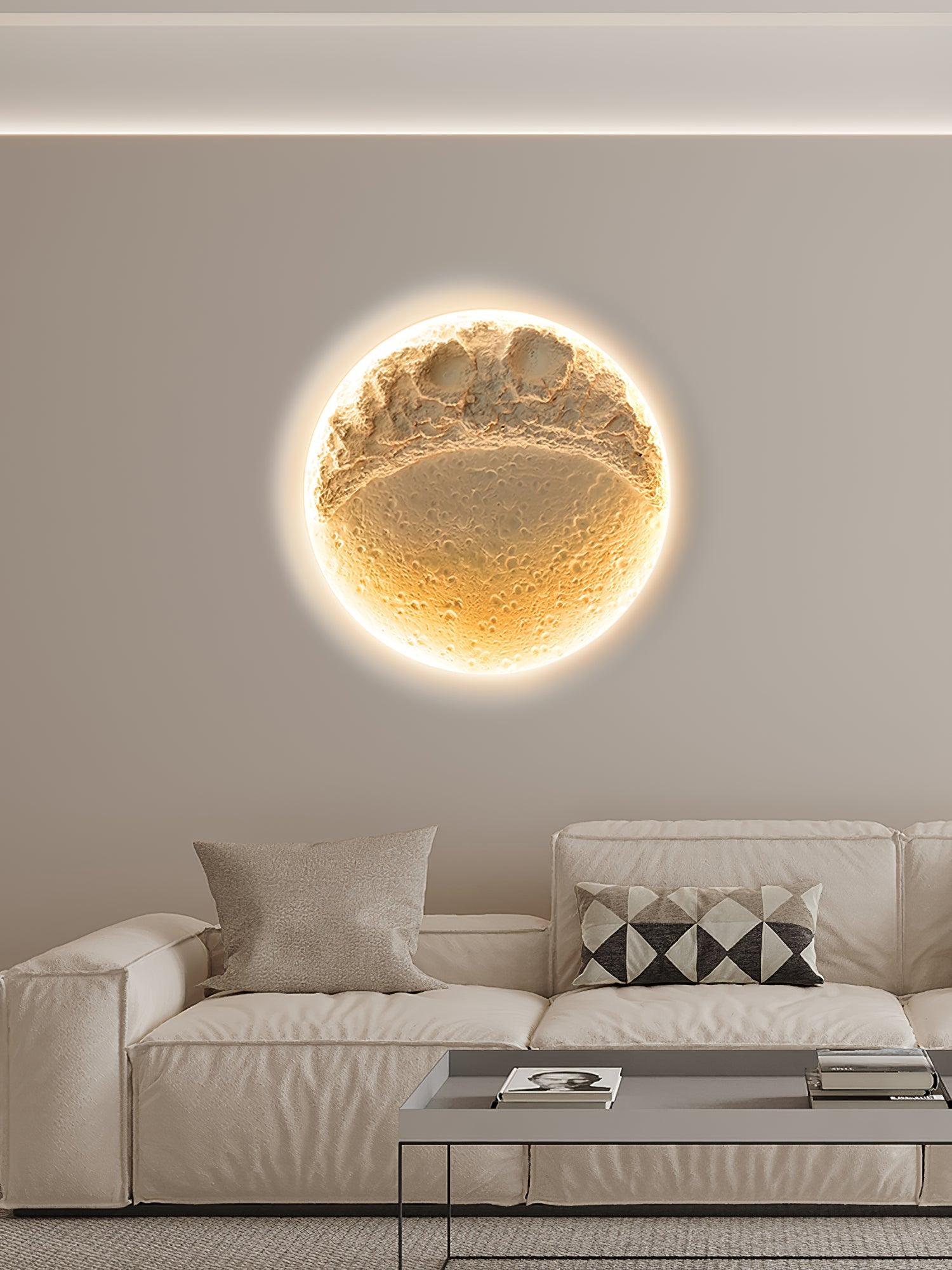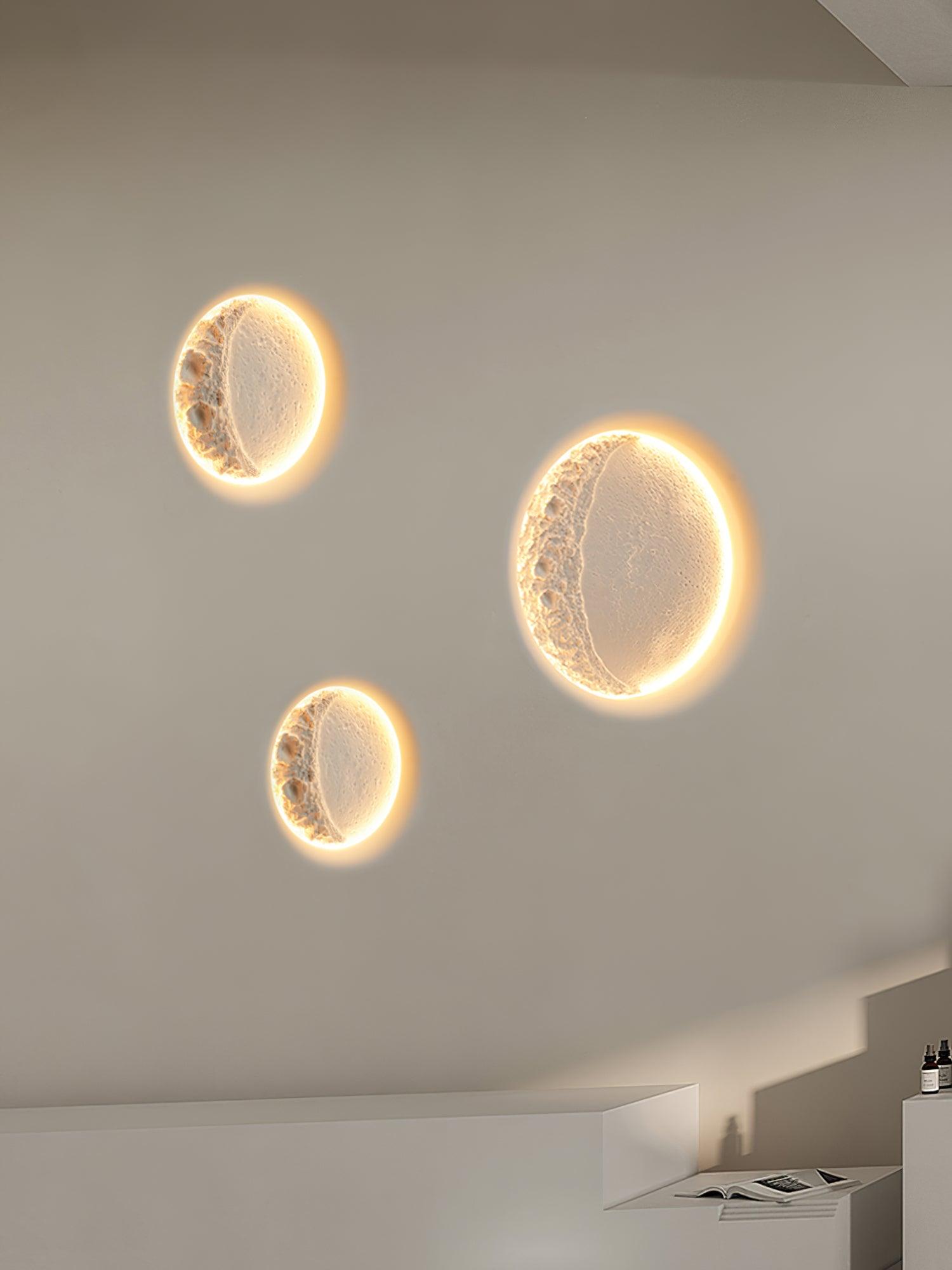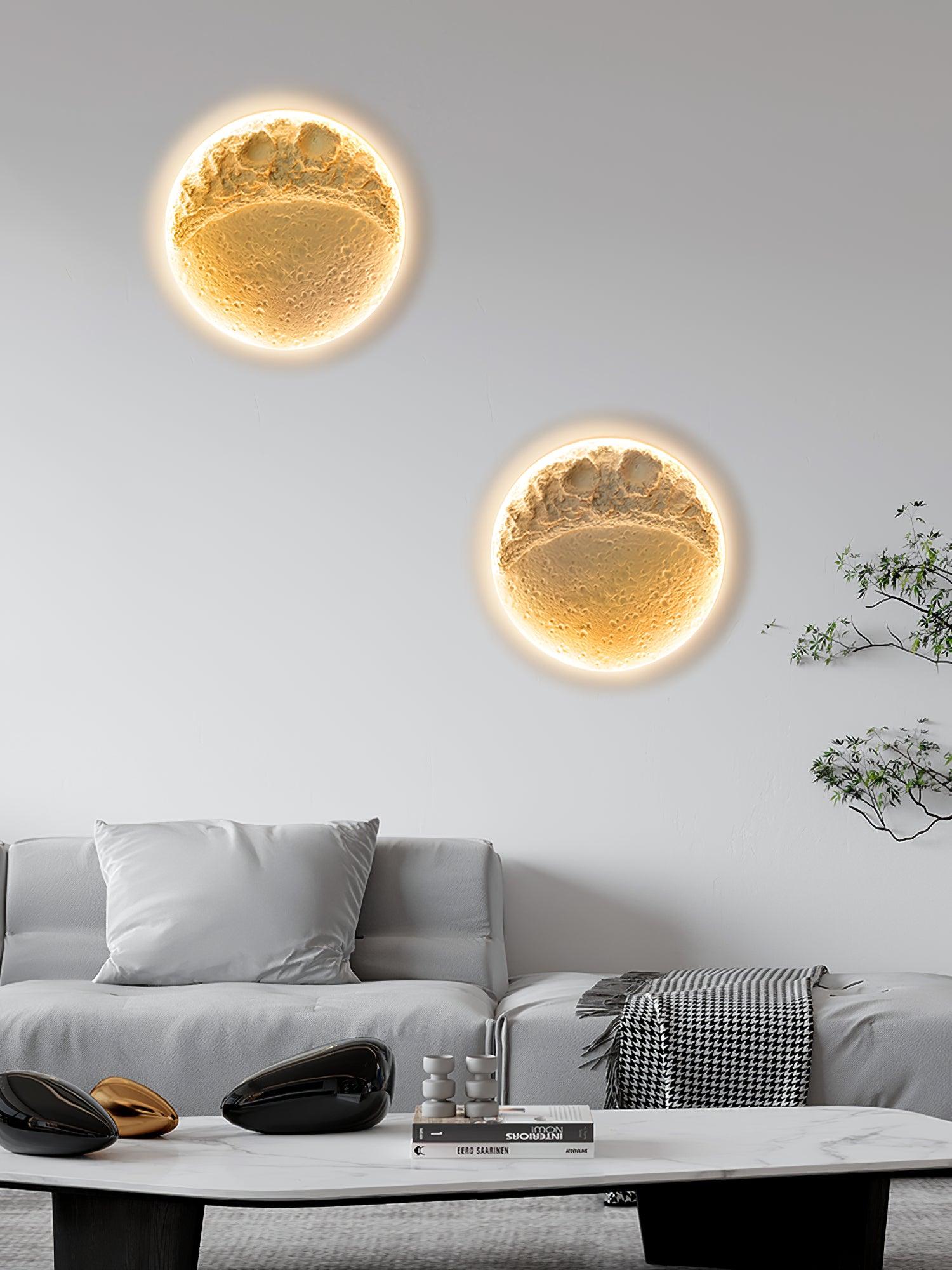 This wall light is made of gypsum material. Its lamp body design is full of artistic atmosphere. and it highly imitates the craters design on the lunar surface. which makes the wall lamp more realistic and three-dimensional.