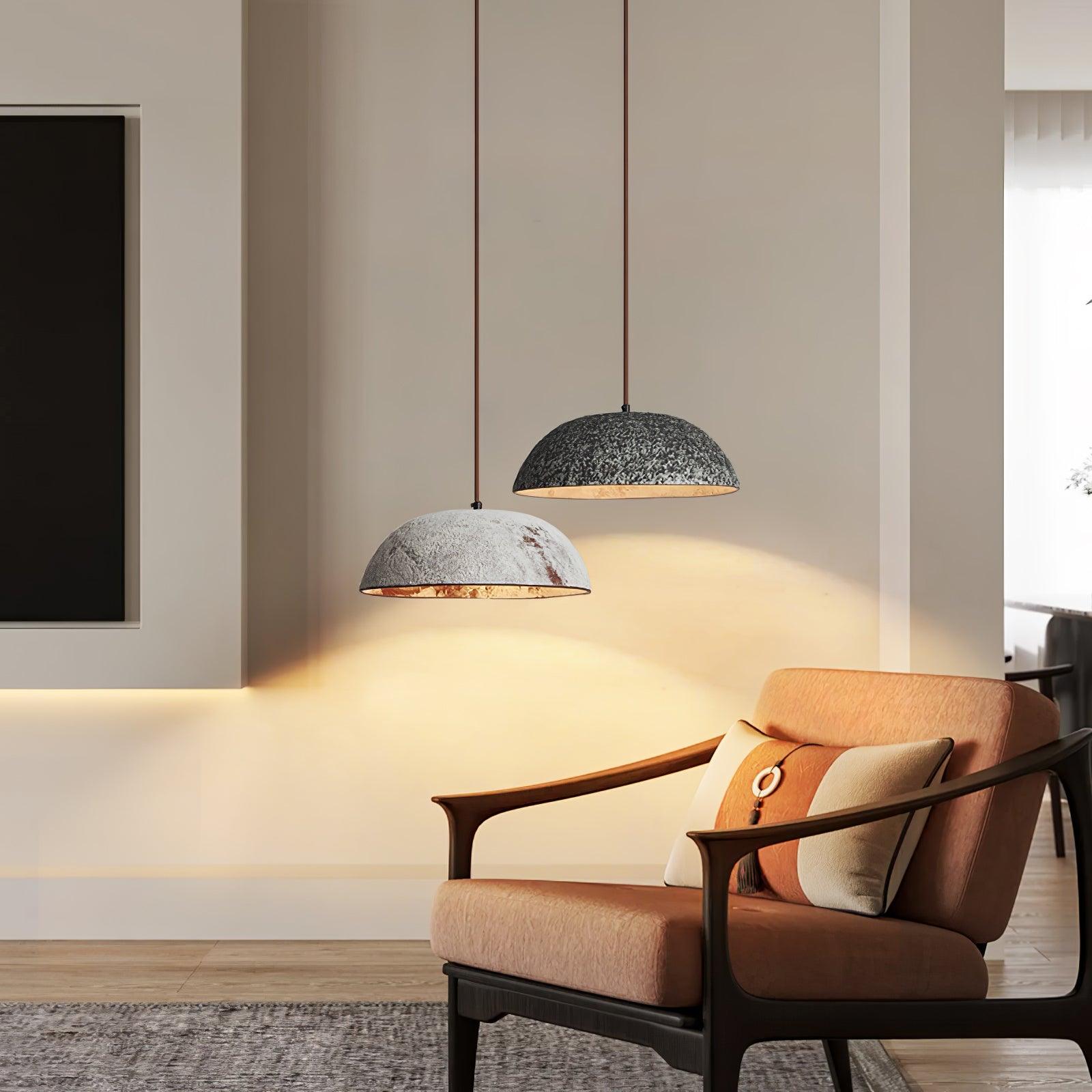 This Half Dome Vintage Ceramic Pendant Lamp is an elegant piece of art. with a deep. vintage charm. The gray and white tones of the surface give it an antiquated feel. with subtle texture patterns that are reminiscent of time-worn elegance. The contrast between the gold inner lining and the outer hue adds a refreshing touch of light when the lamp is illuminated. Simple yet sophisticated. this piece is perfect for a modern home seeking a touch of nostalgia.