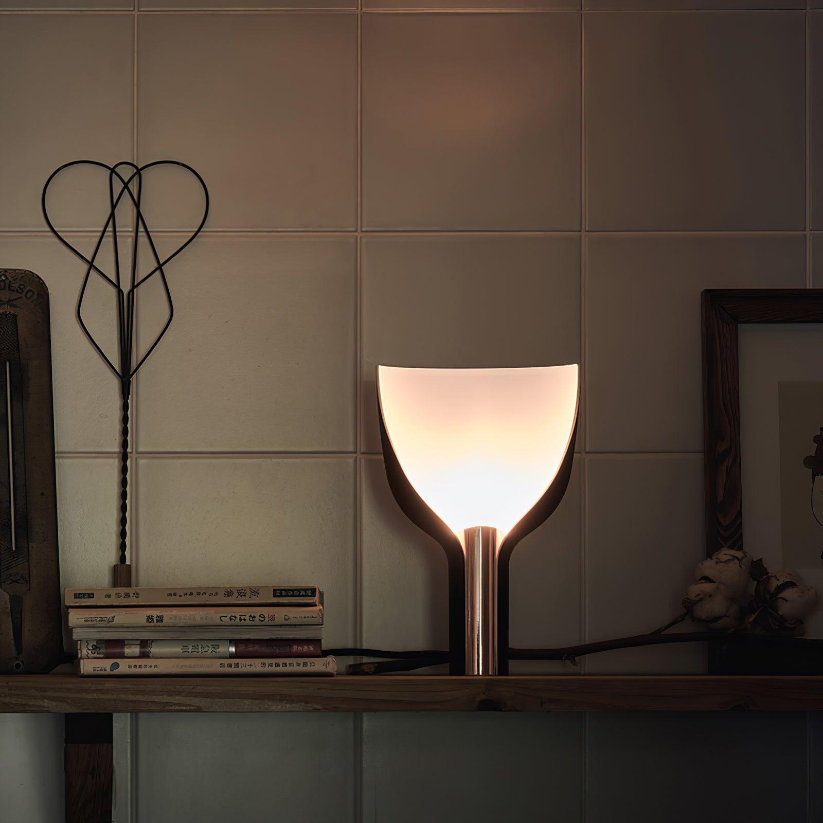 The Half-Funnel Table Light brings together two distinct fluid shapes in a single object. Appearing like a pair of seashells colliding on a cold shore. the rounded front conceals the lighting diffuser - allowing for soft lighting to swell from within. Once lit. a sense of depth is created between the textured layers. A unity between light and darkness.