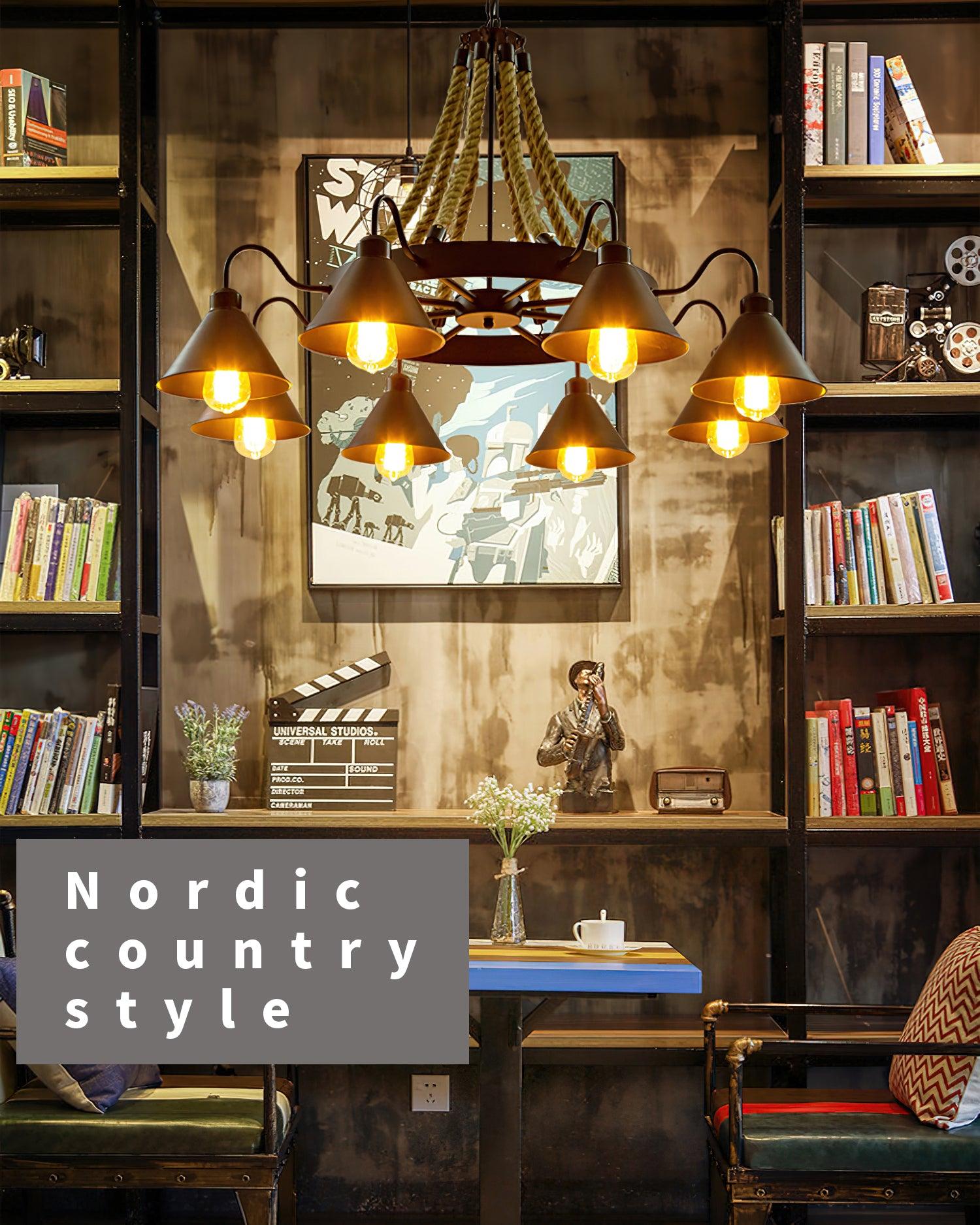 The Hemp Rope Industrial Horn Chandelier is the perfect addition to your space. Its retro industrial style. unique shape. and high-quality hardware materials exhibit a vintage charm. With a hardware iron paint lampshade and Edison light bulb. it creates a warm and inviting atmosphere. Its speaker shape. frosted surface. and environmentally friendly baking paint process ensure durability and resistance to oxidation and rust.