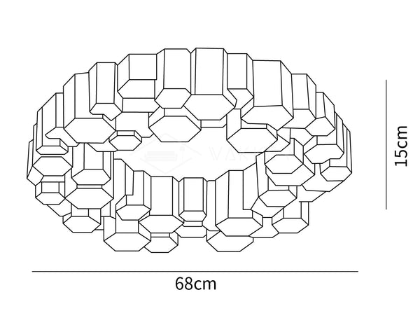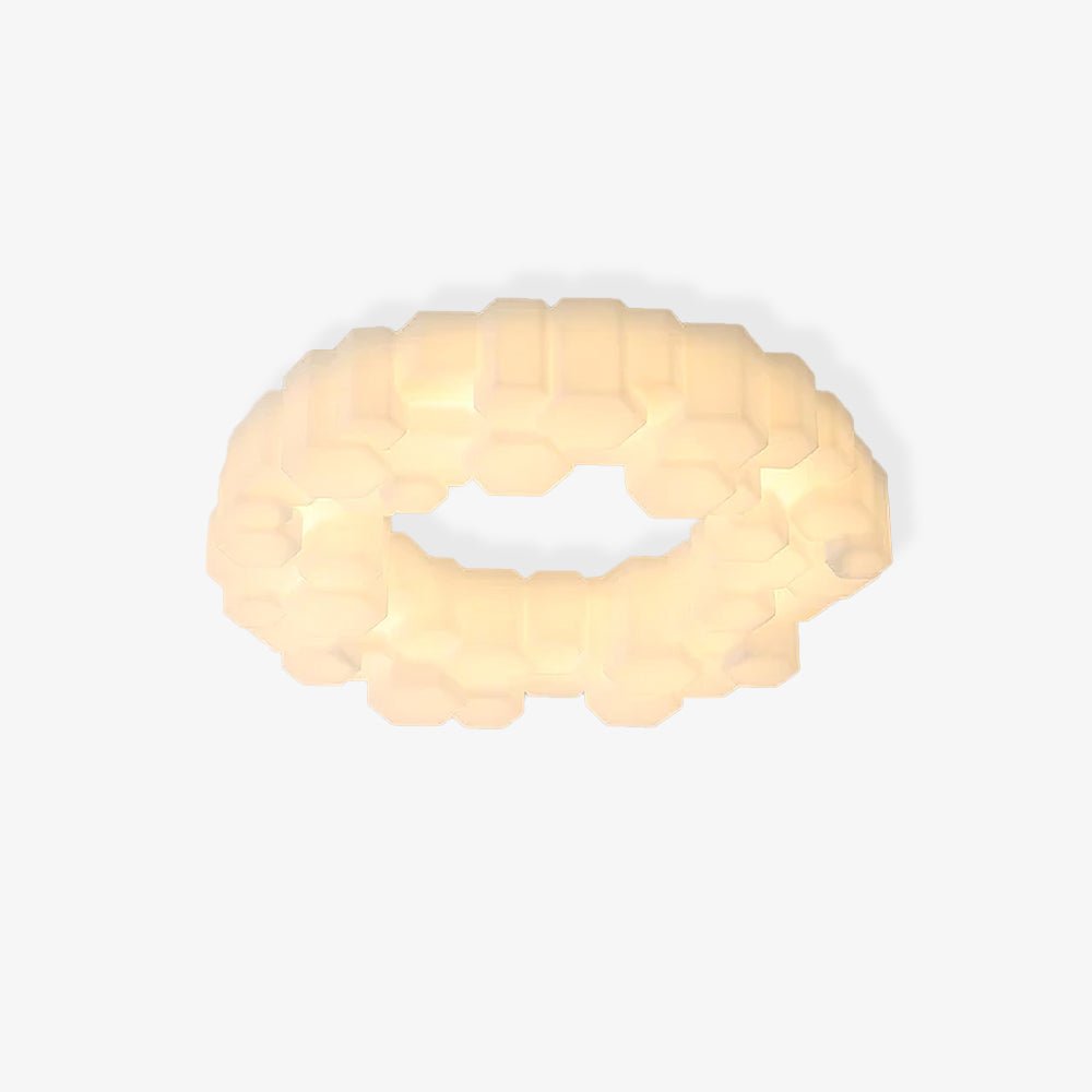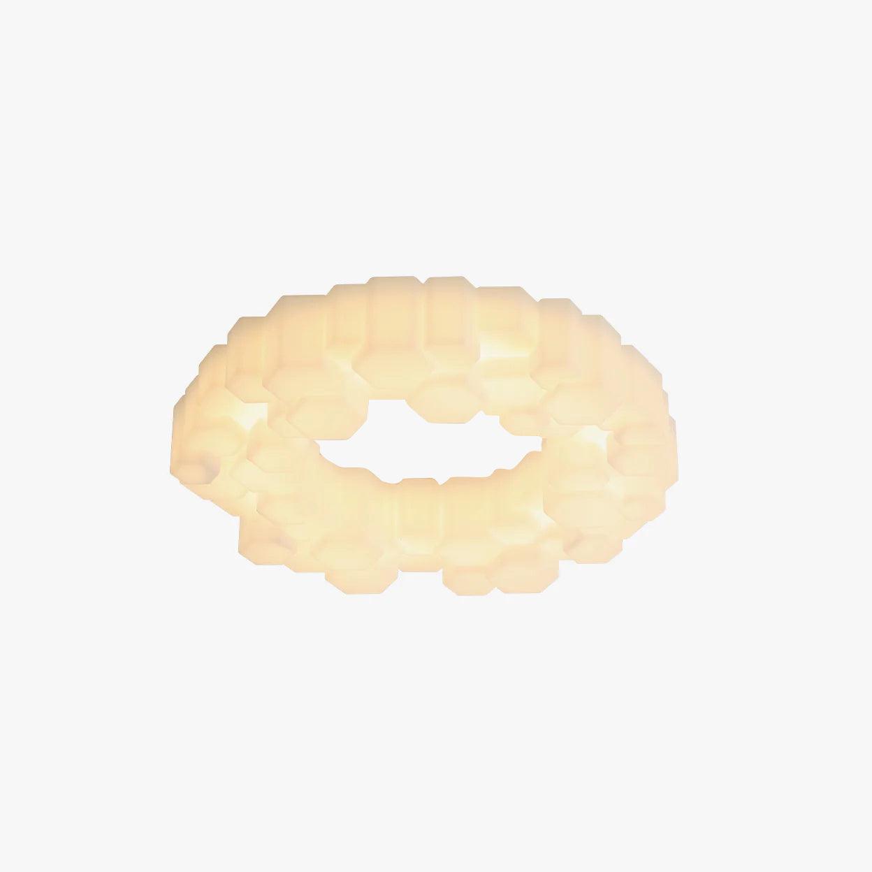 The lamps are made from modules in glossy white polycarbonate. a glass-like and durable material that is used. Its design is reminiscent of the hexagon pattern of honeycombs. The ceiling lights give off a warm and pleasant light.