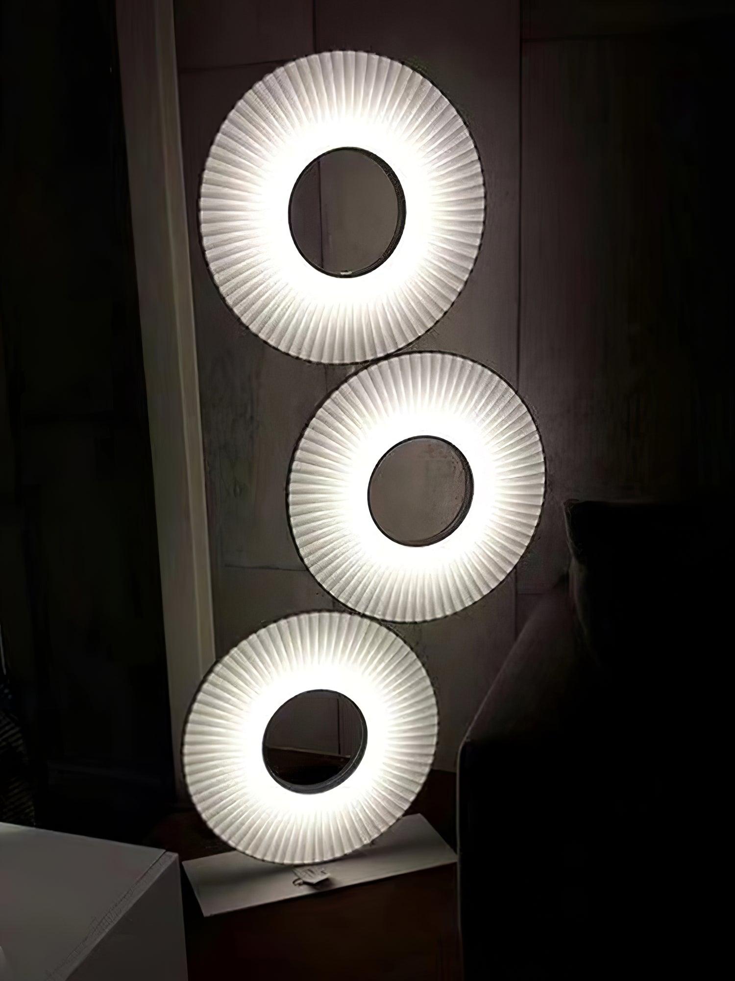 Illuminate your space with the powerful and diffused light of the Iris Totem Floor Lamp. Designed with indoor sunshine in mind. this lamp brings a soft and star-like glow to any room.