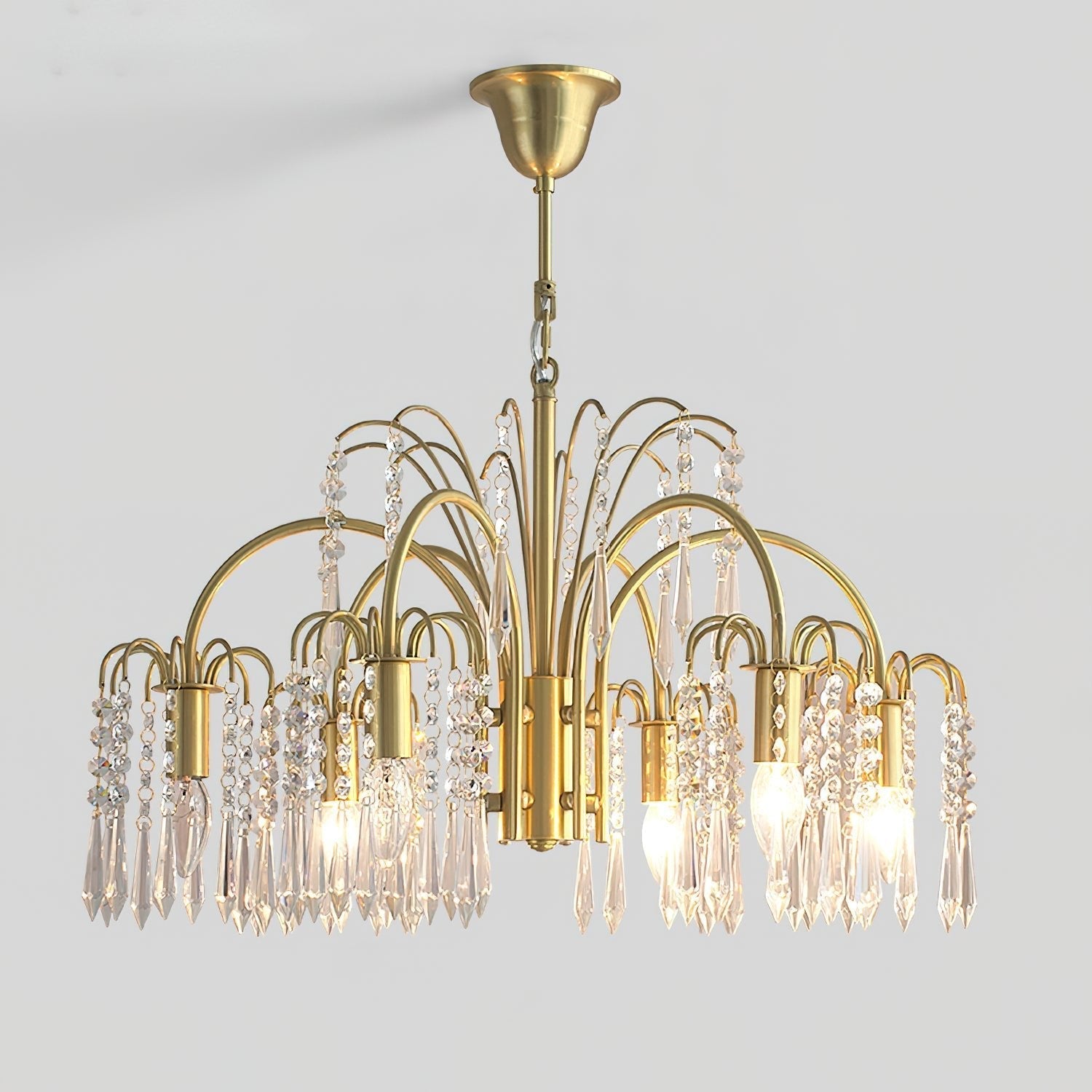 Experience the ultimate in grandeur and elegance with the Isla Dawn Chandelier. Adorned with cascading gold frame and hanging crystal bead chains. its design is inspired by the regal and symmetrical aesthetics of the royal court. Let Vakkerlight's luxurious chandelier bring a warm and luxurious ambiance to your home.