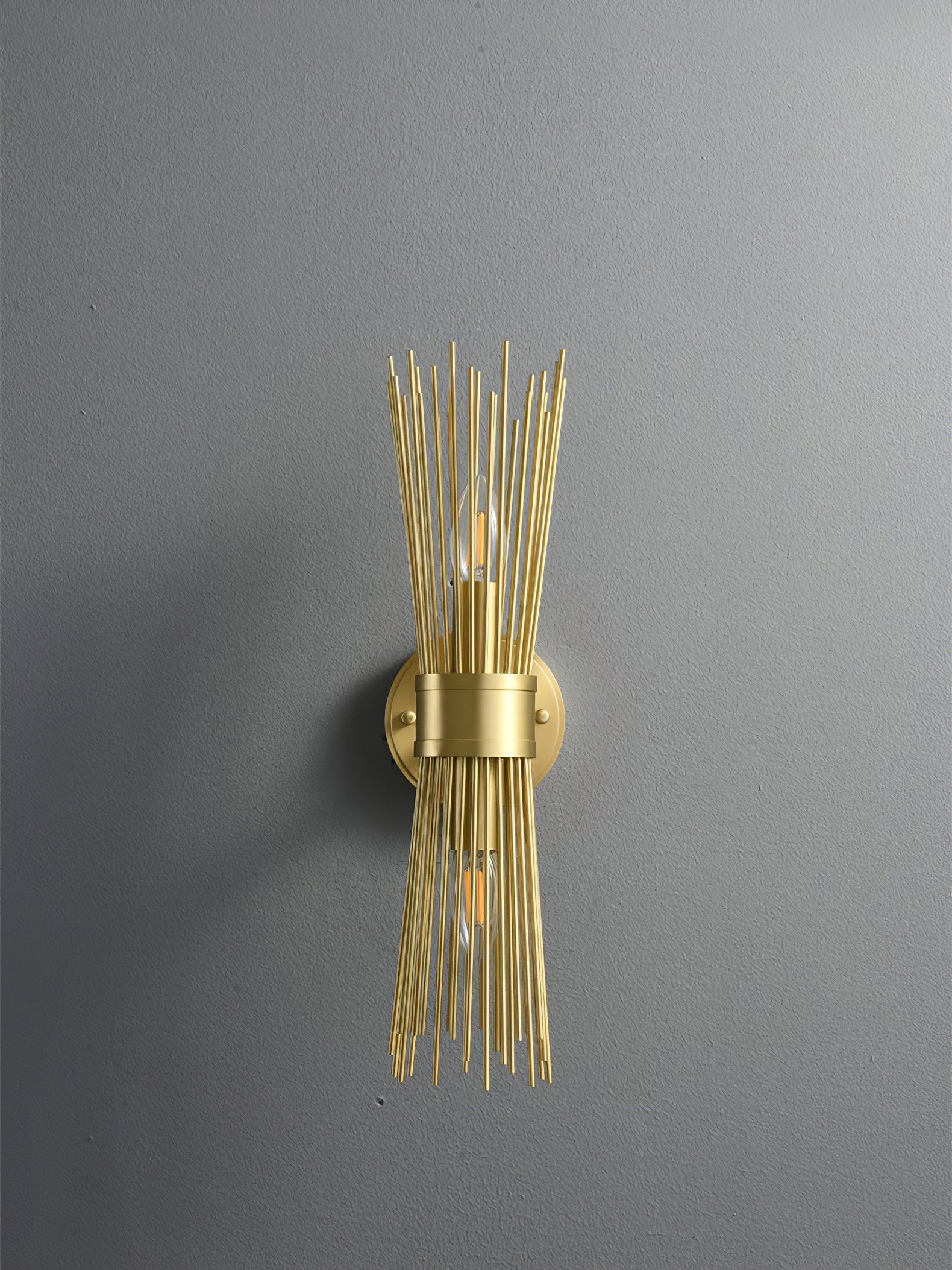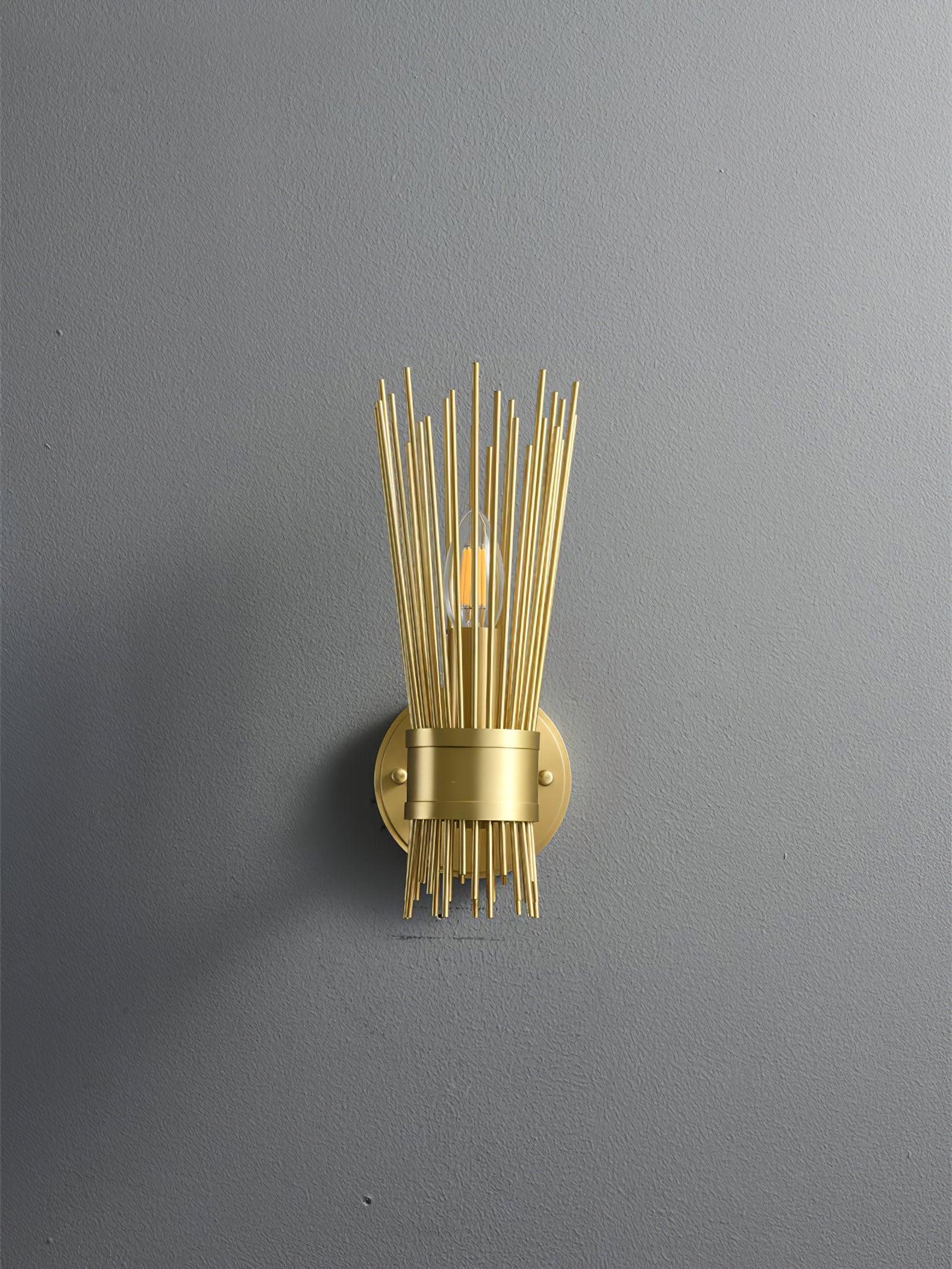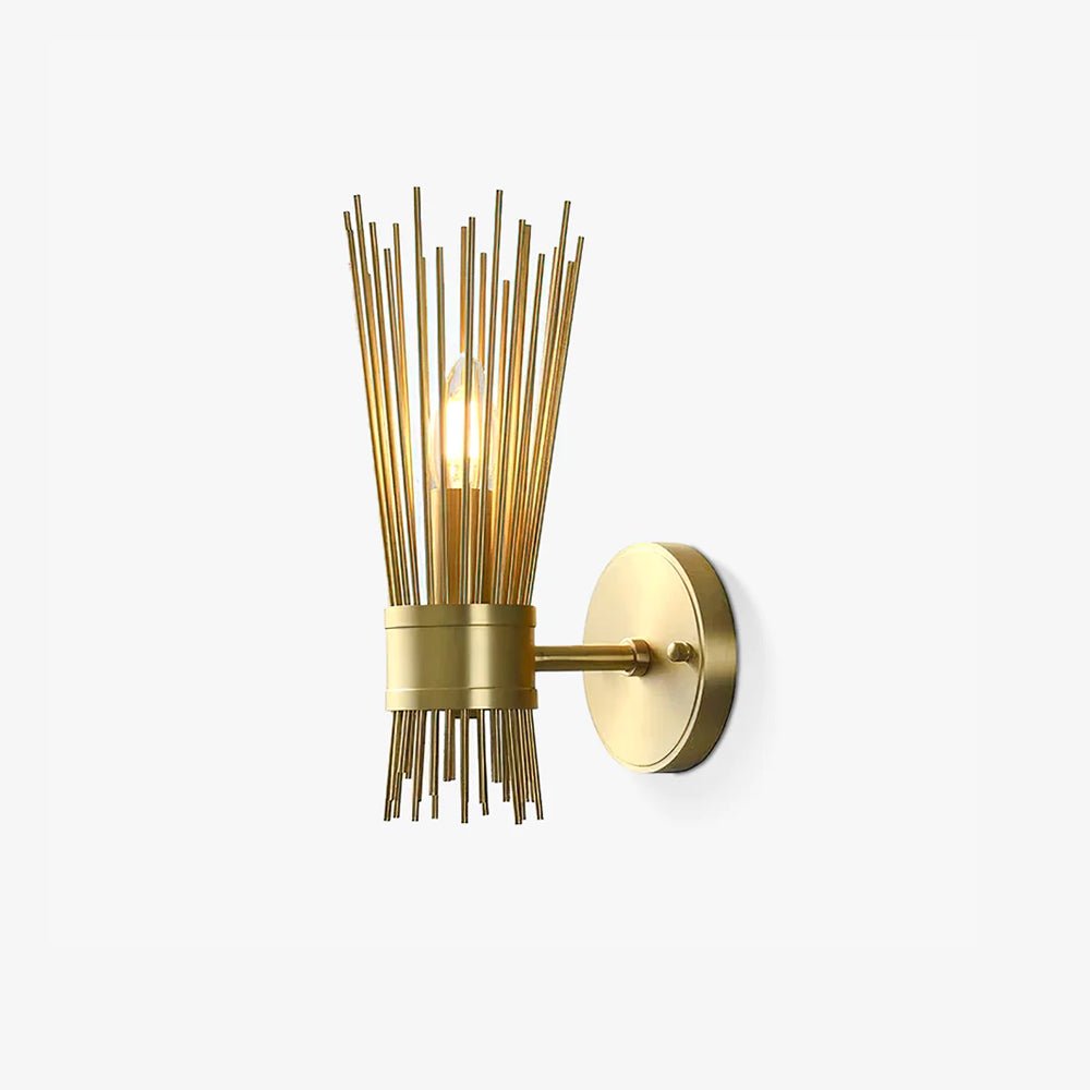Gold-finished rods playfully radiate from the central band like rays from the sun. This mid-century modern look is flirty throwback to a simpler age. With its personality and charm. sure to make a statement in any entryway. hallway. or bedroom.