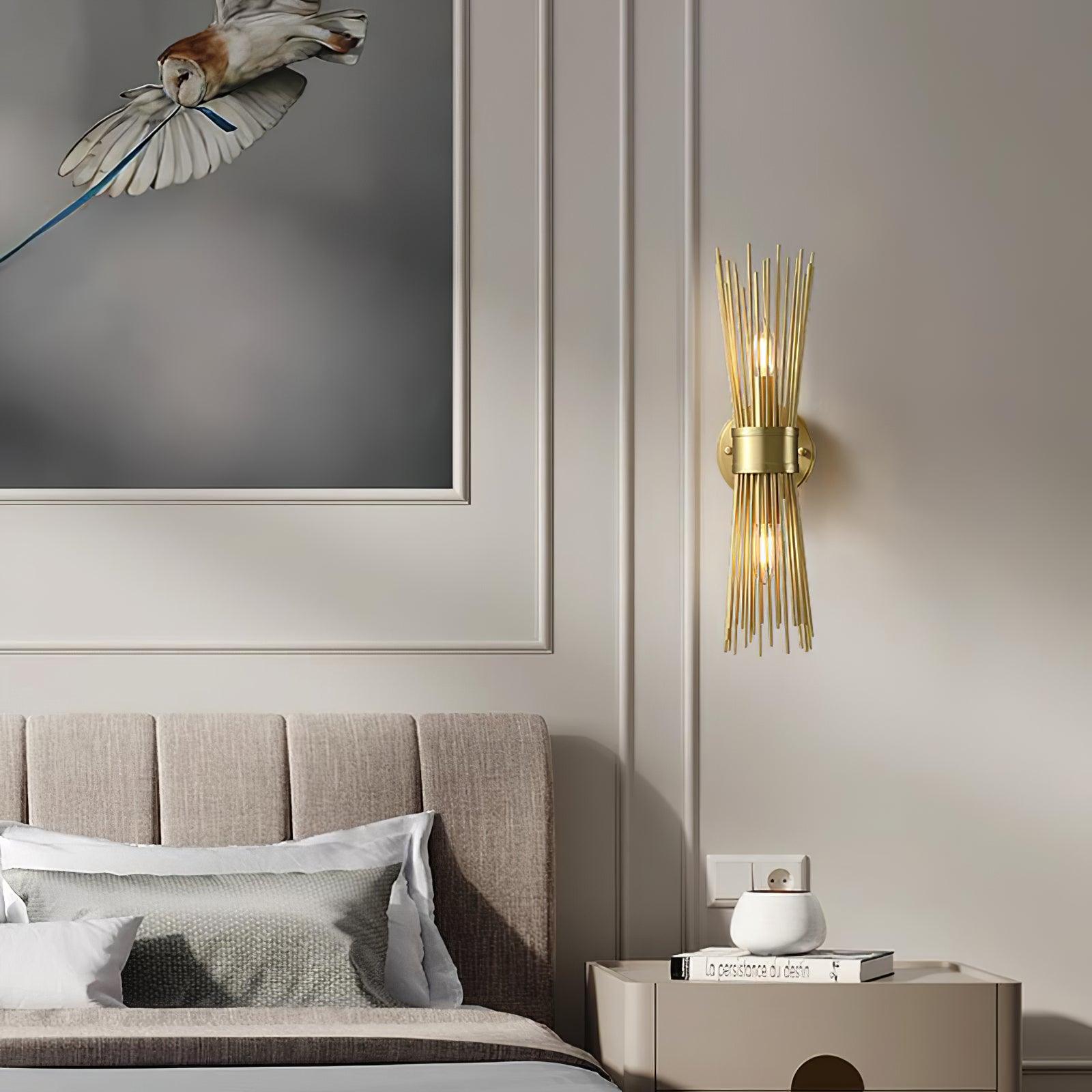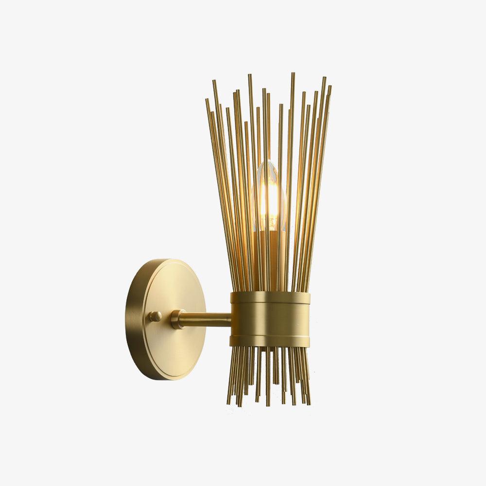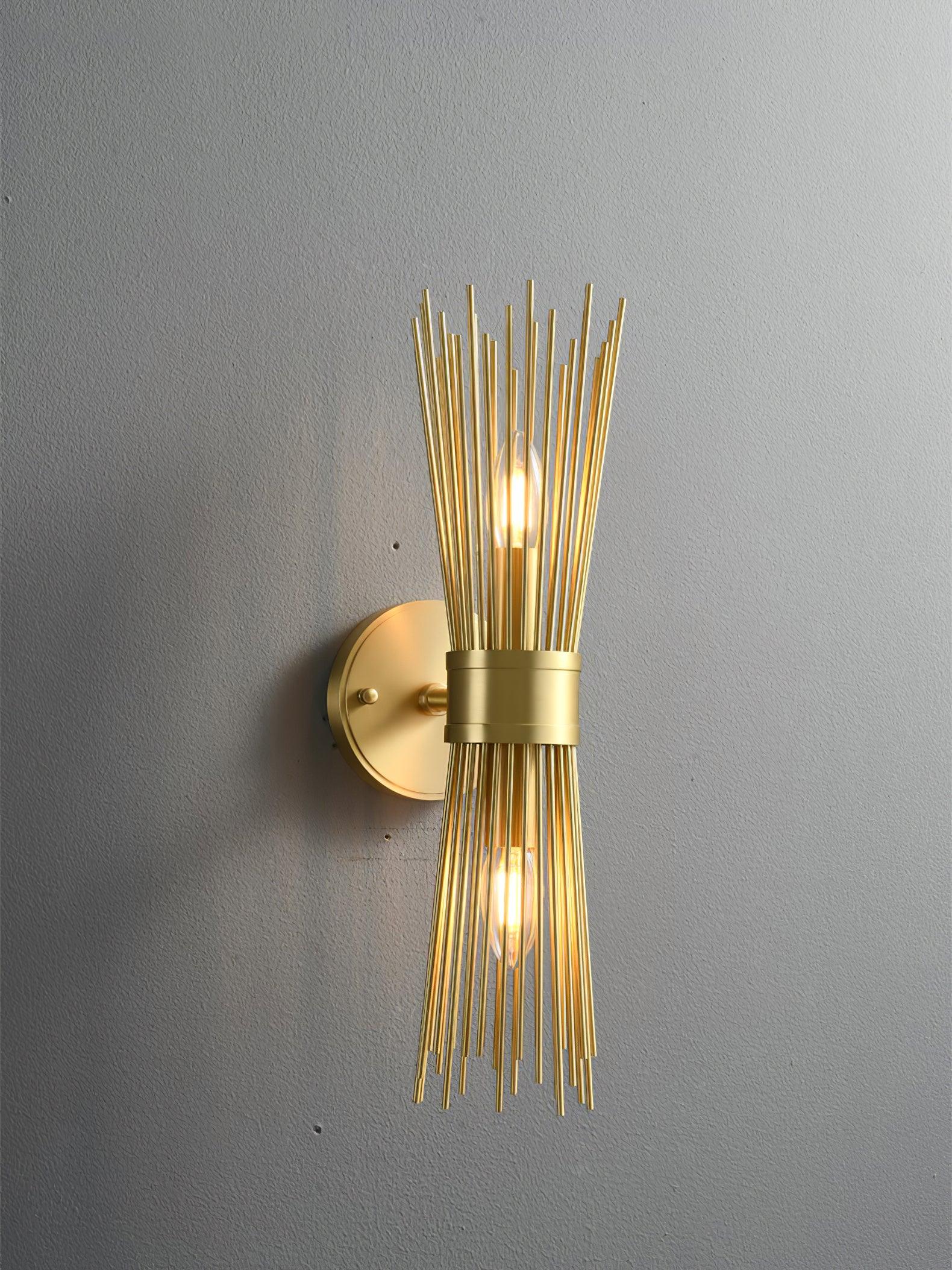 Gold-finished rods playfully radiate from the central band like rays from the sun. This mid-century modern look is flirty throwback to a simpler age. With its personality and charm. sure to make a statement in any entryway. hallway. or bedroom.