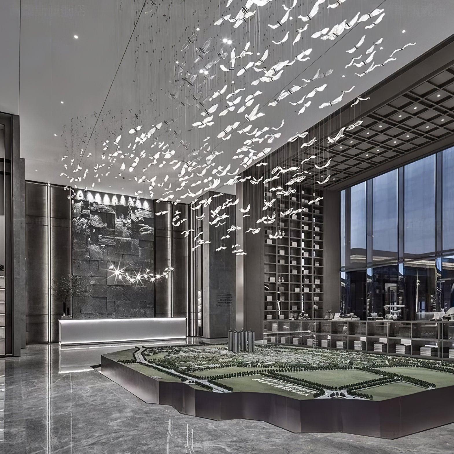 Create a stunning focal point in any room with this eye-catching Large Seagull Chandelier. The durable glass structure can support the custom shaping of any size. giving an extra layer of personalization. Bring a unique touch to your home with this modern statement piece.