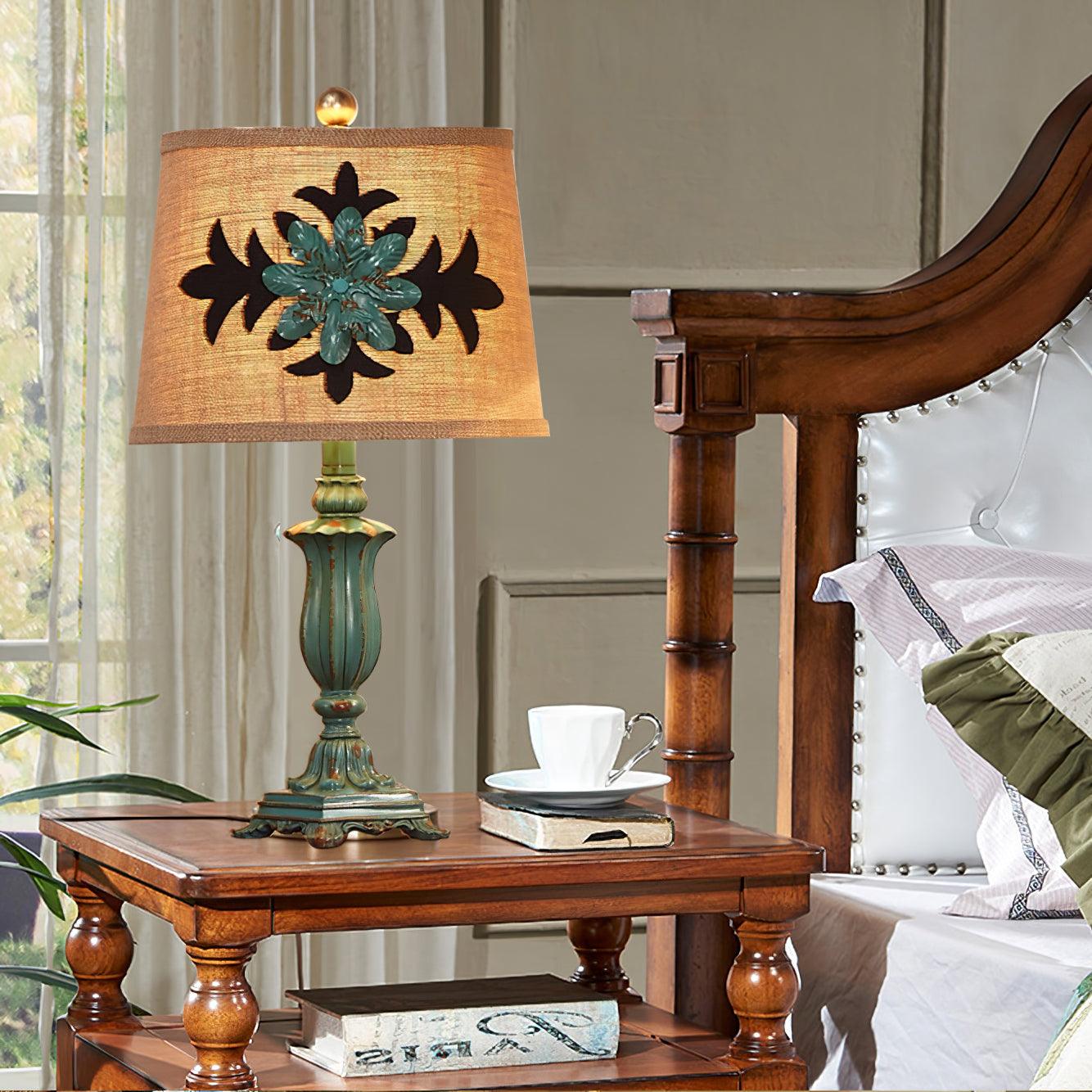 This table lamp has an elevated design that's made to stand out in your master suite or living room. It's made from resin and features a tapered silhouette with distressed details for a vintage vibe we love. Up top. it's finished off with a taupe-hued fabric shade with a striking bell-shaped silhouette.