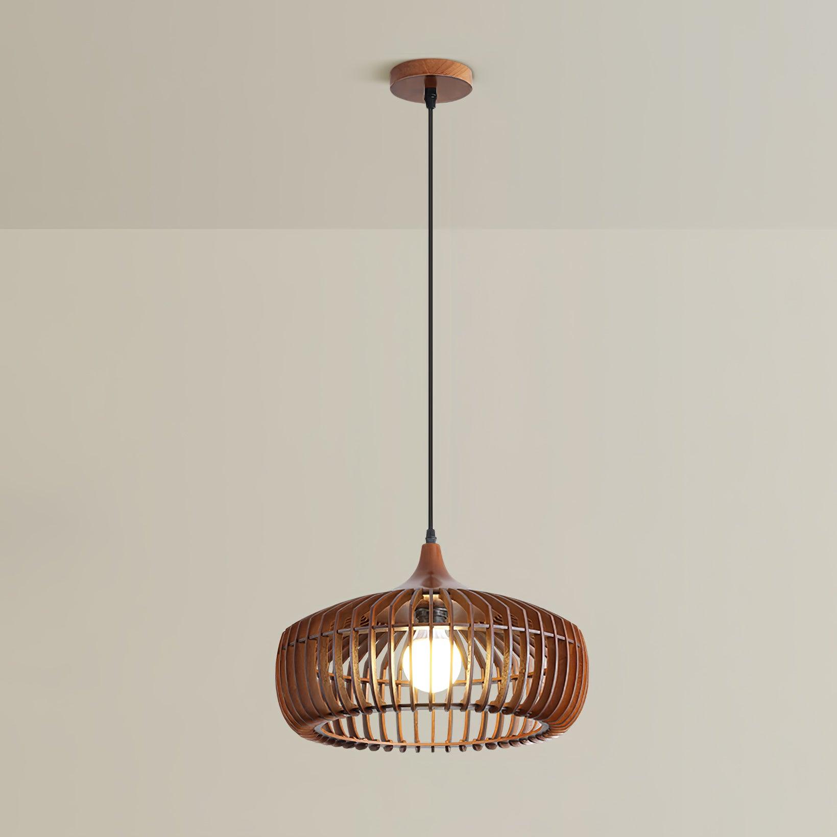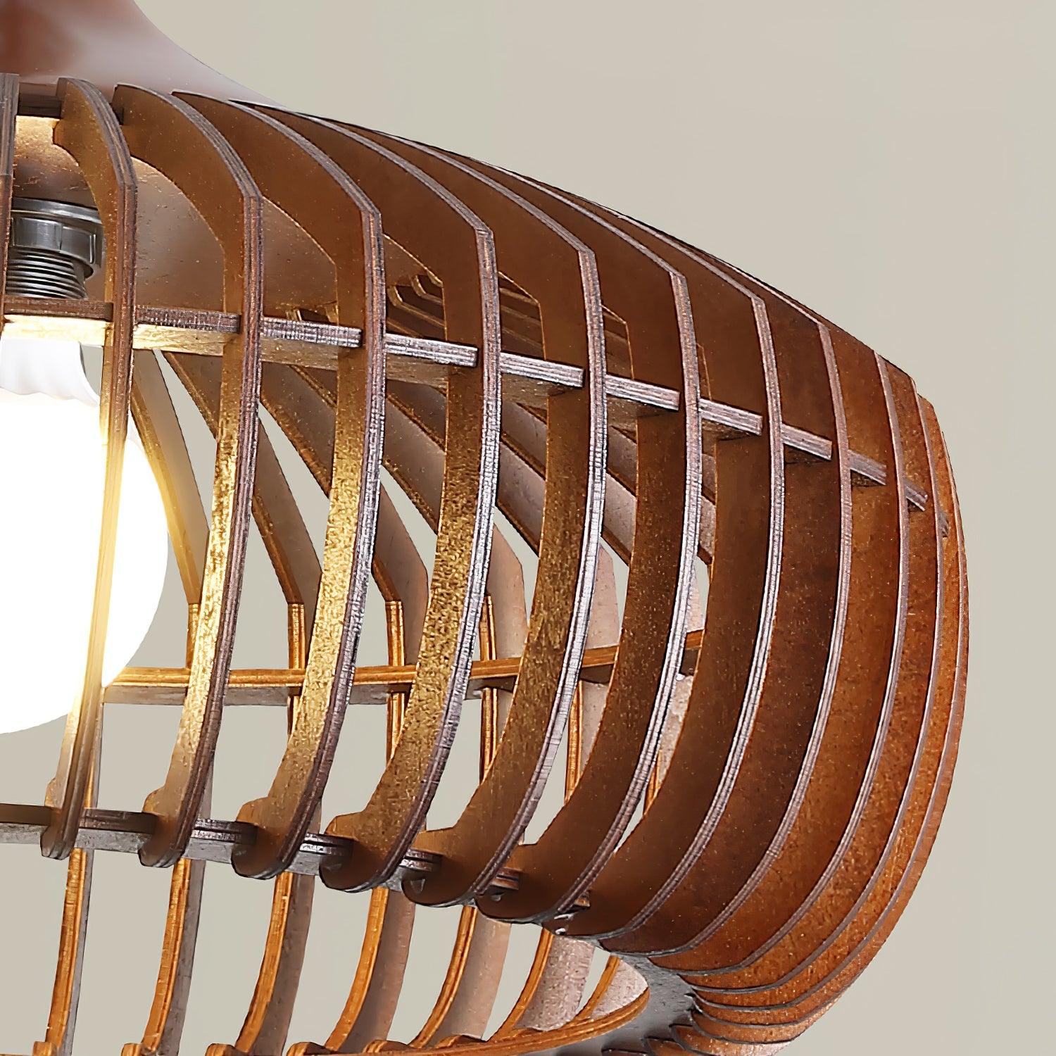 Elevate your space with the Lattice Nest Wooden Pendant. where the stark simplicity of metal meets the intricate artistry of wooden craftsmanship. This pendant light boasts a stunning cage-like structure. meticulously designed with slender wooden slats that form a spherical. lattice framework. The wooden elements. resembling the carefully woven twigs of a bird's nest. envelop the light source. creating an interplay of light and shadow that captivates and charms.