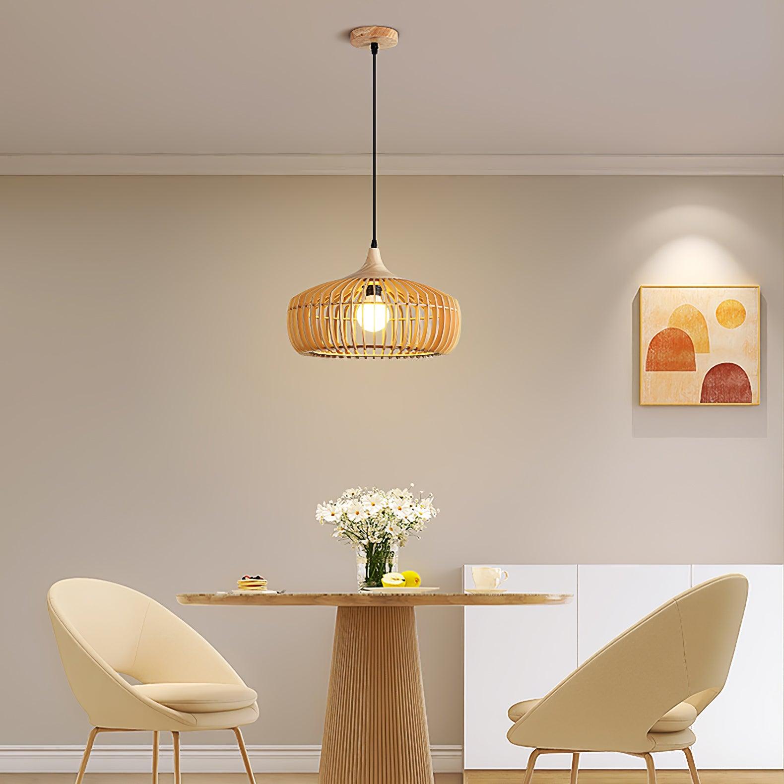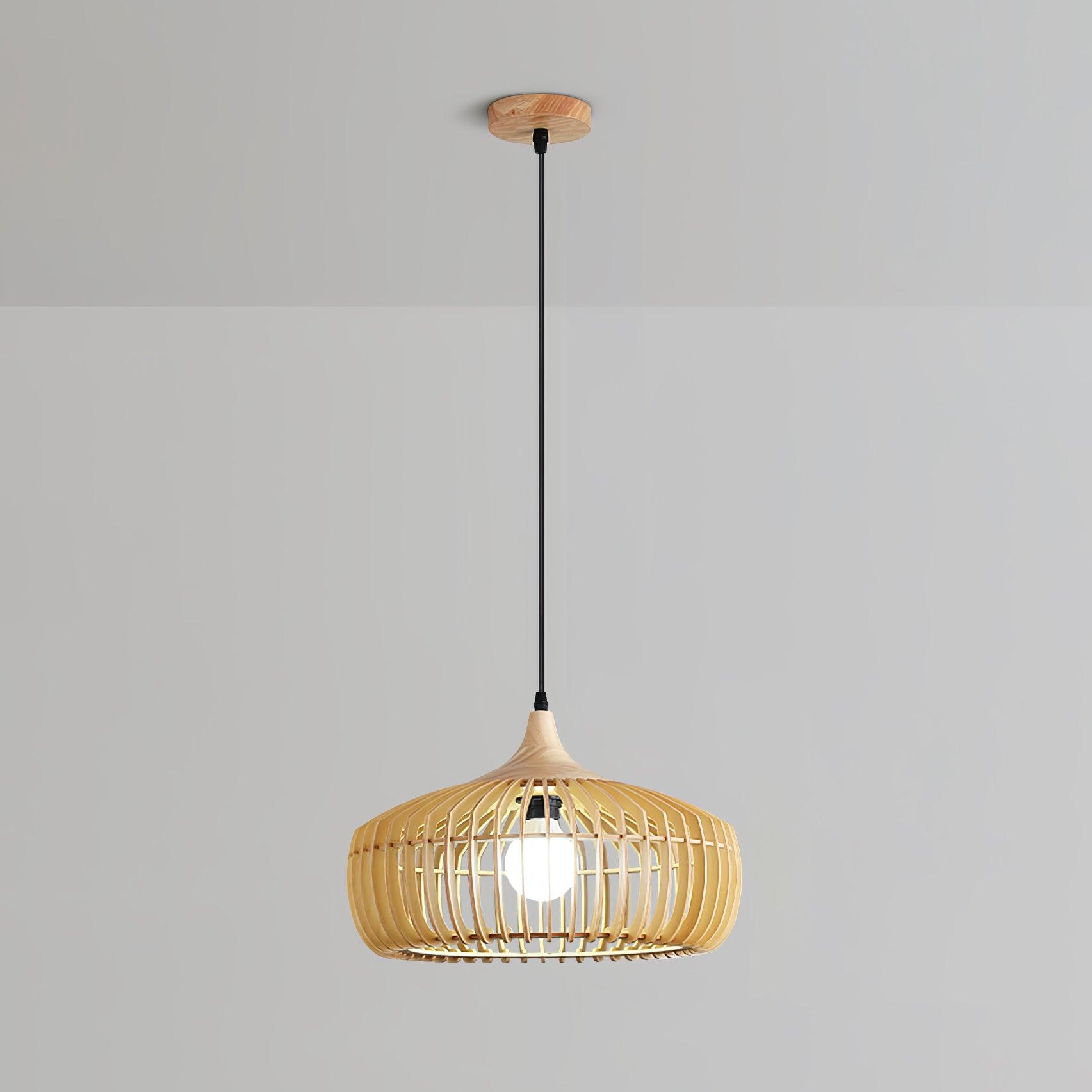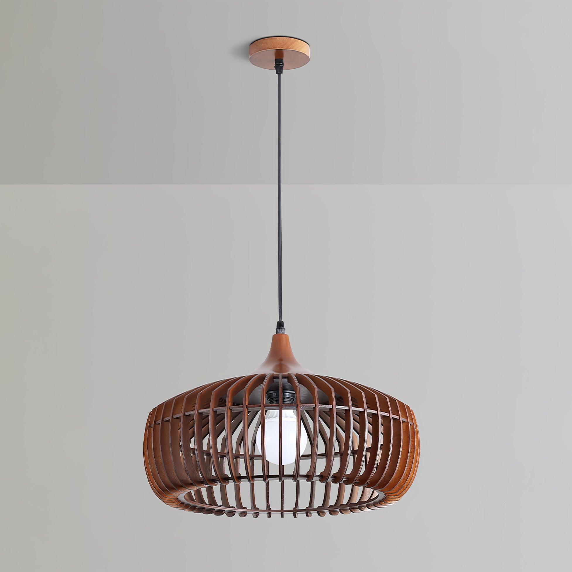 The metal components of the pendant provide a sleek contrast. their clean lines and refined finish offering a contemporary twist to the rustic shade. When lit. the bulb's glow is softly diffused by the wooden cage. casting a warm. inviting ambiance throughout your space. Ideal for creating a focal point in living rooms. dining areas. or entryways. the Lattice Nest Wooden Pendant is more than a lighting fixture—it's a statement of design that draws inspiration from the natural world and transforms it into an elegant piece for modern living.